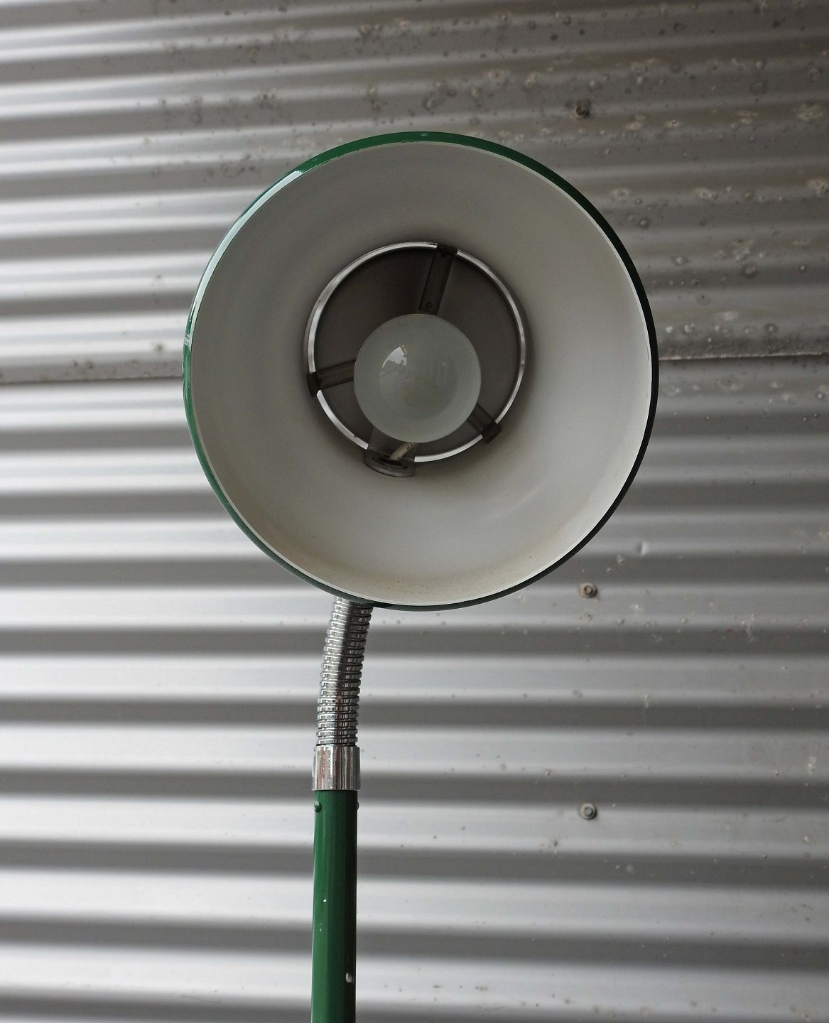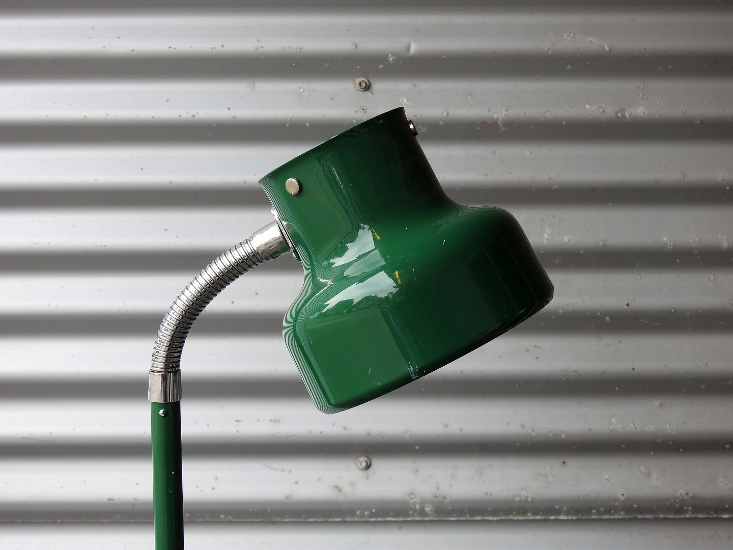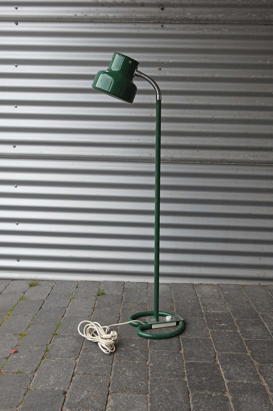 Bumling standerlampe i grønlakeret metal med regulerbar skærm