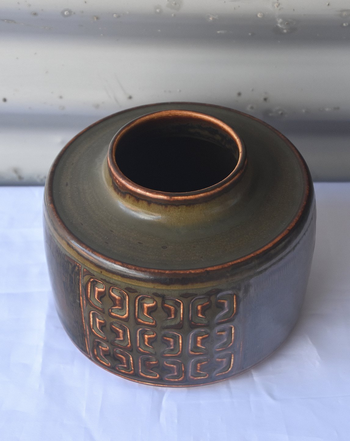 Smuk buttet vase i stentøj nr. 229. Signeret VP