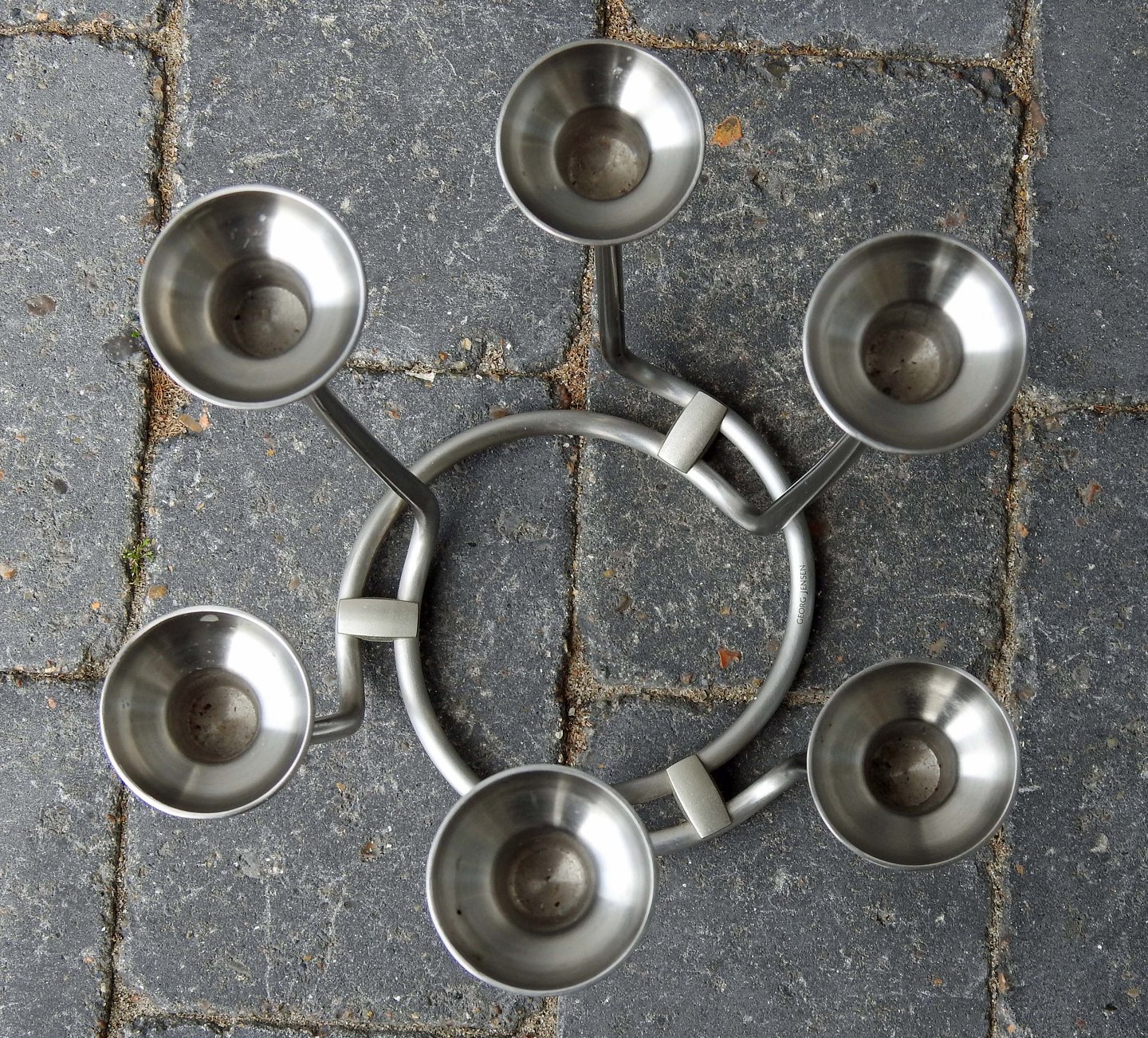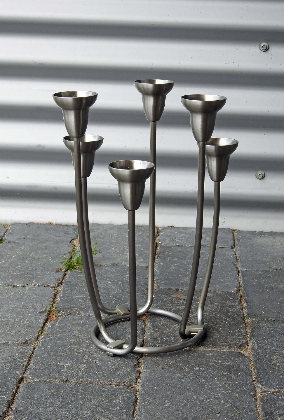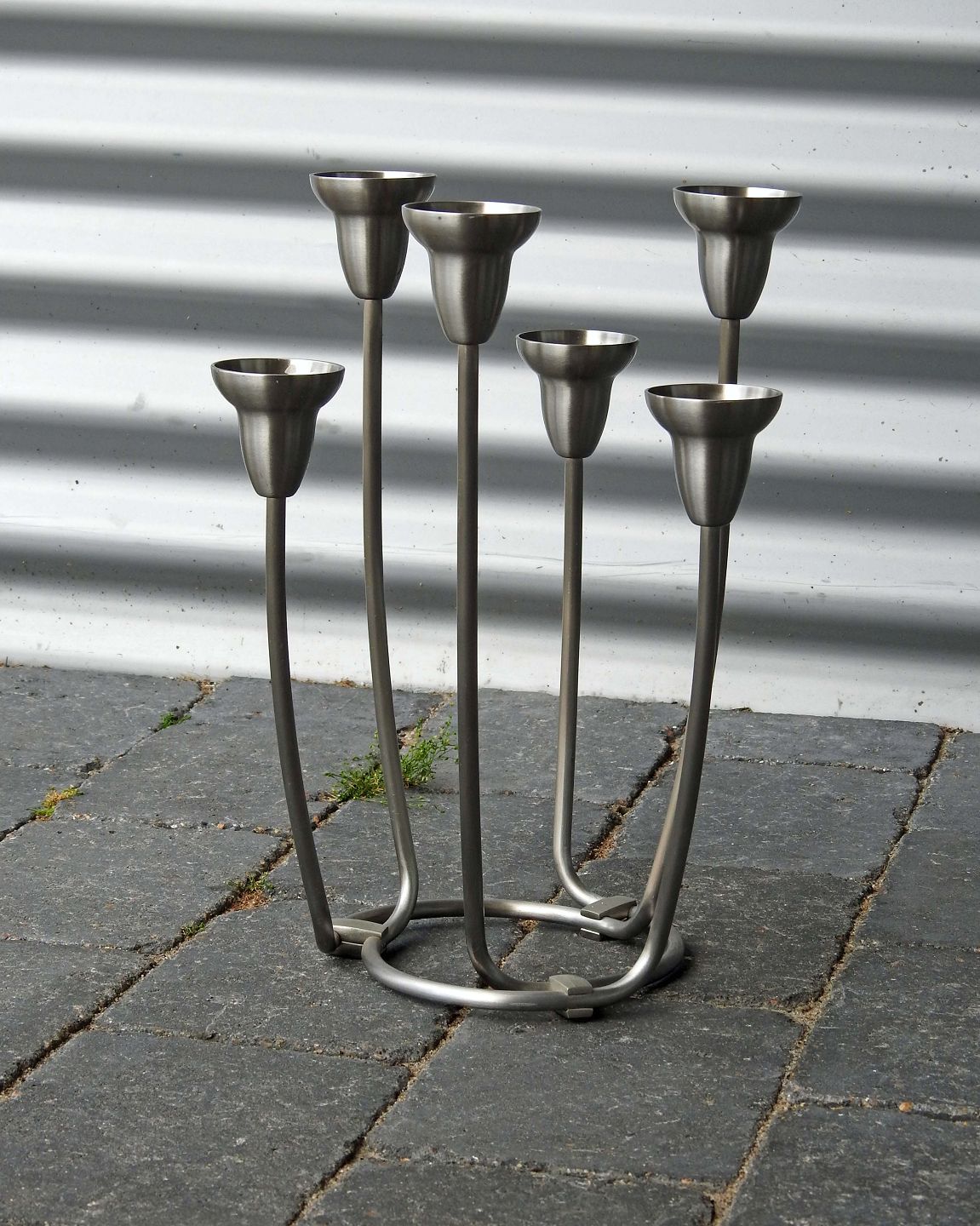 Lysestagen måler H. 32 cm. Ø. 24 cm.