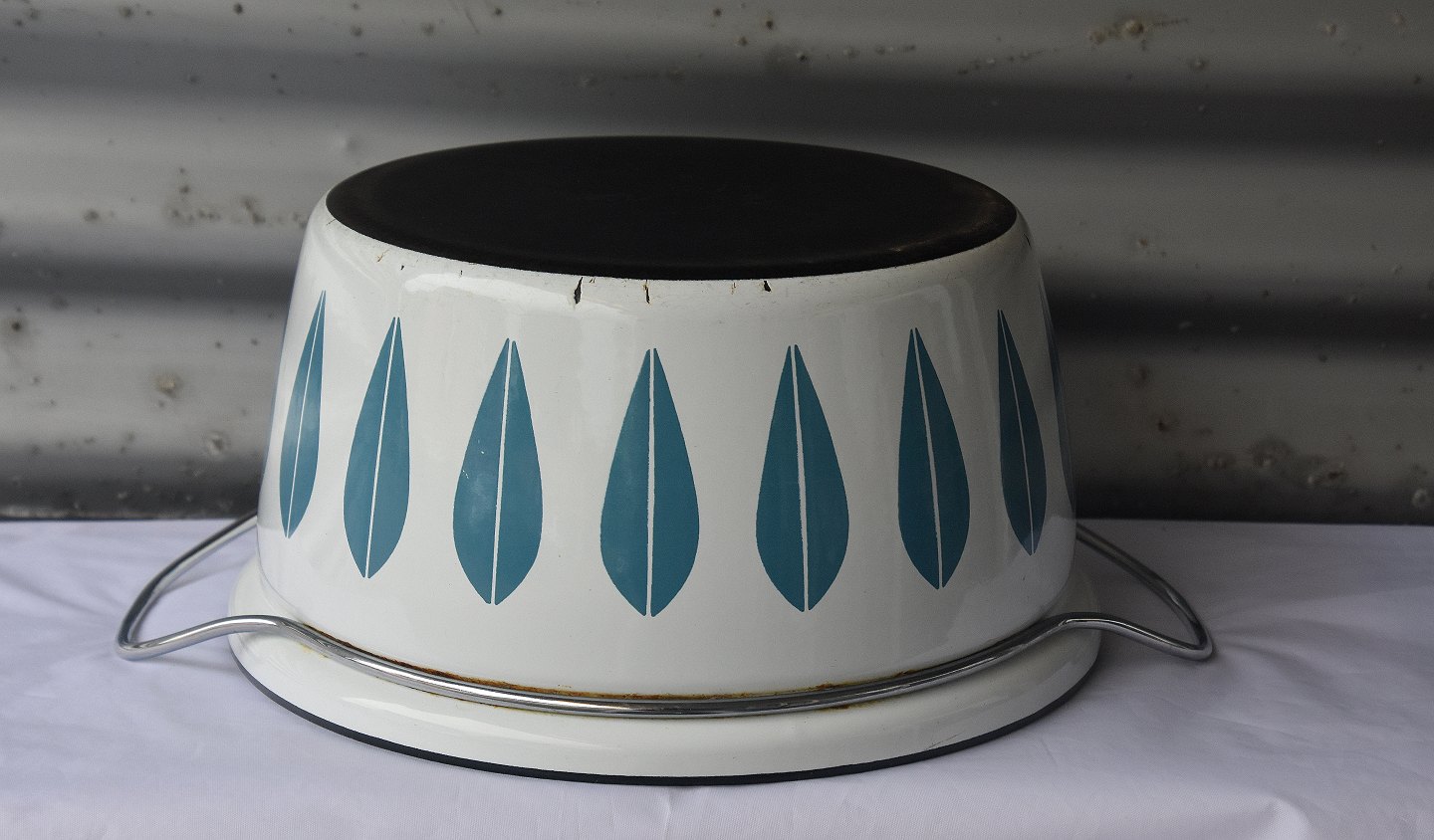 Der er en lille smugle spor af afslag i emaljen, nederst på gryden
