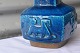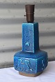 Bordlampe nr. 21702, 4sidets stentøjs lampe fod med fugle og dyr. Lampen er med blåt glasur