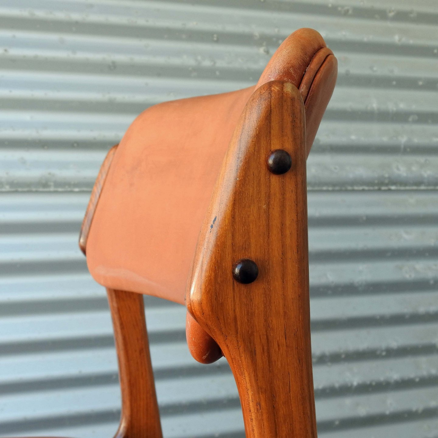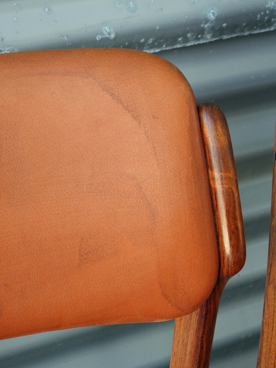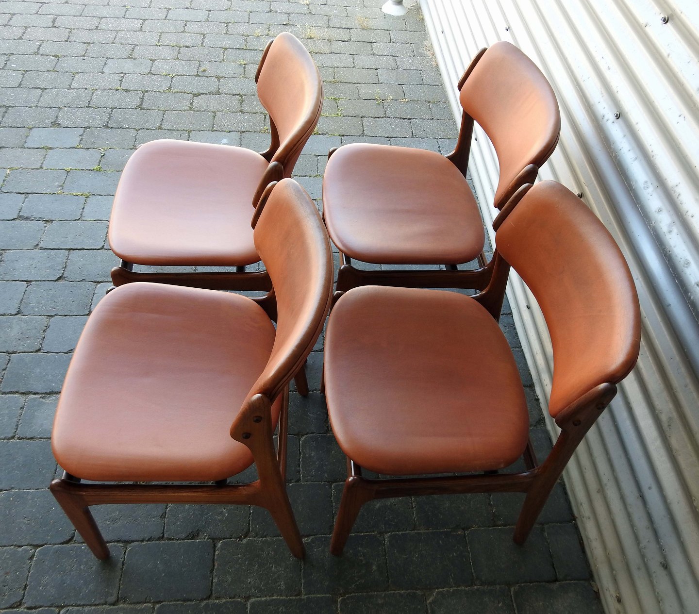 Fire styk spisebordsstole i palisander med polstret sæder betrukket med cognacfarvet læder