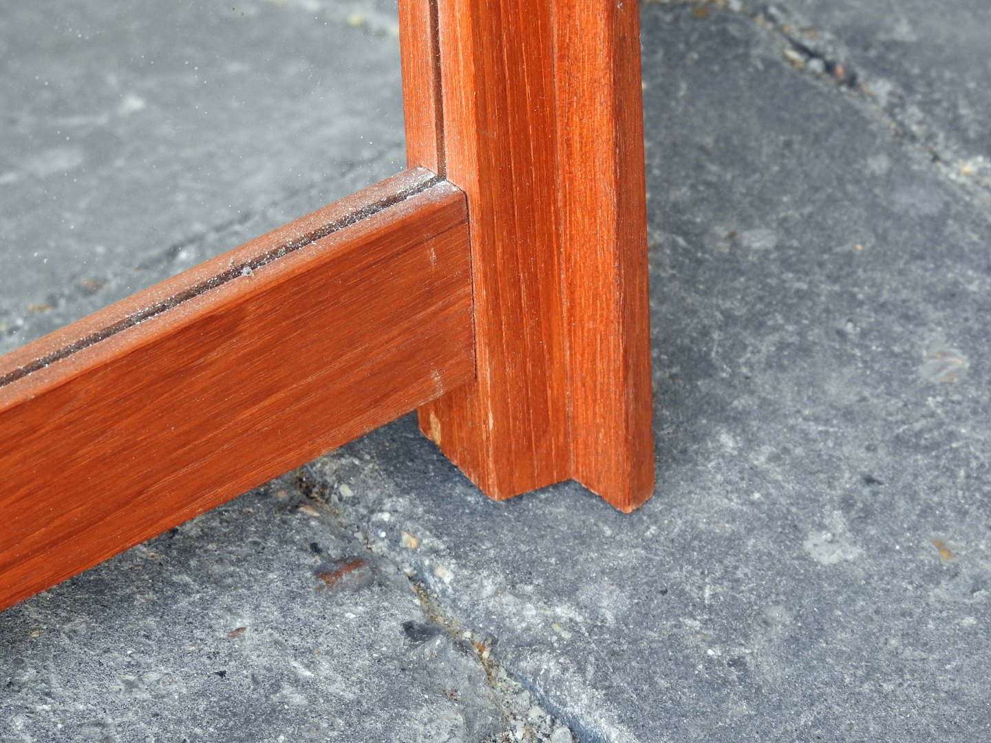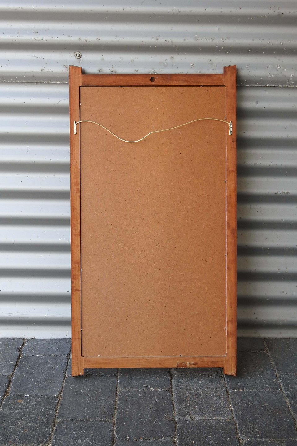 Aflangt spejl med ramme af teaktræ