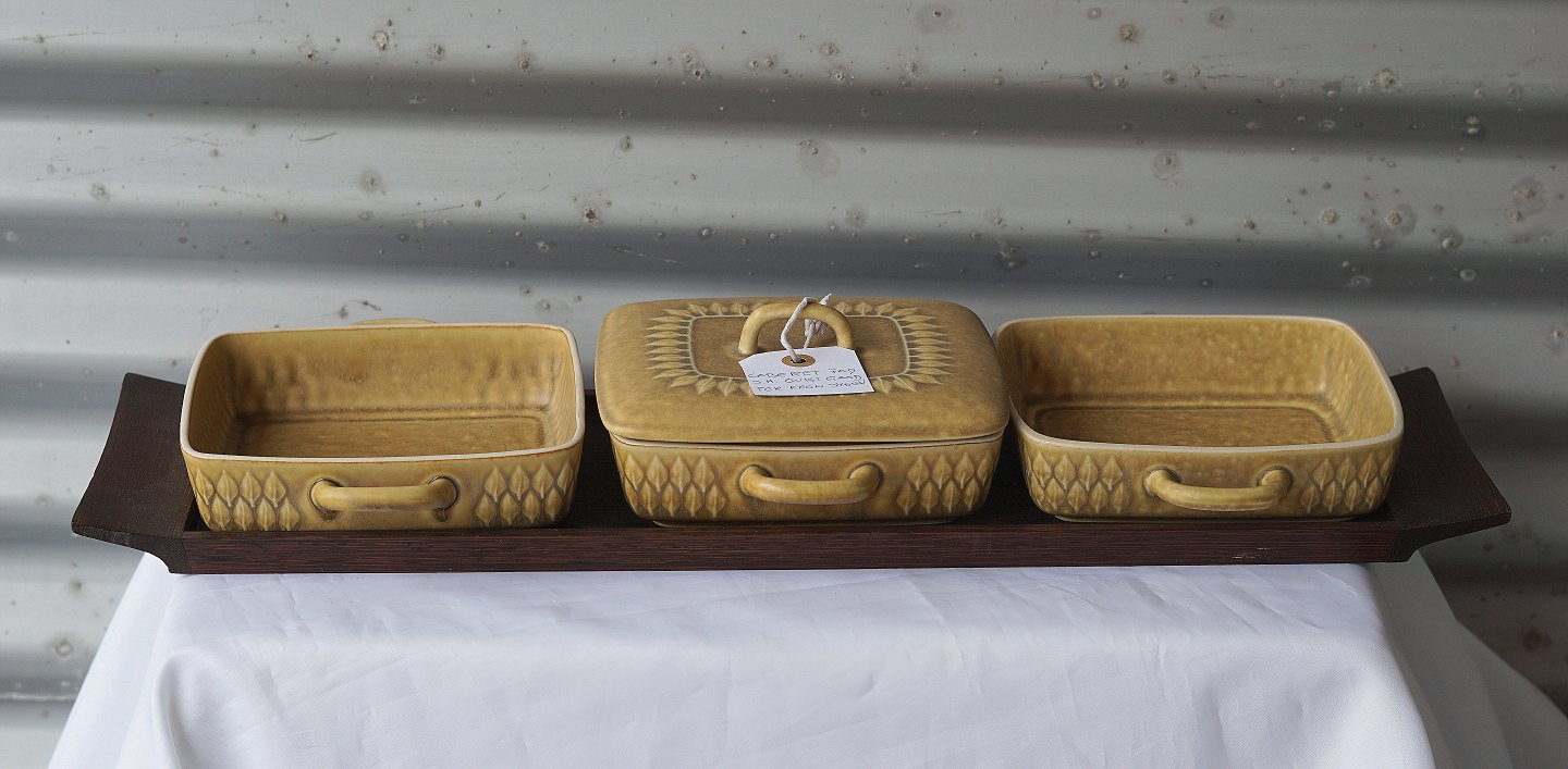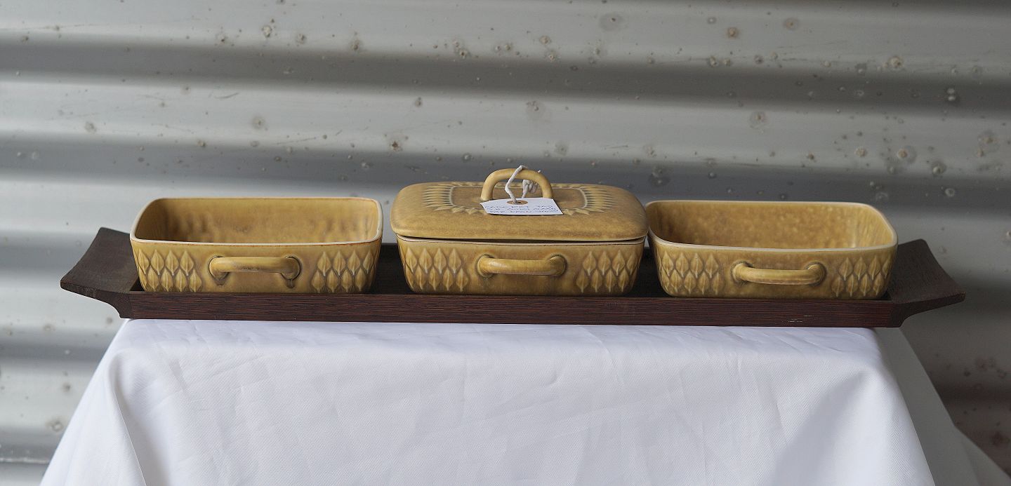 Cabaretfad, med 3 skåle fra Relief, den ene skål har låg
