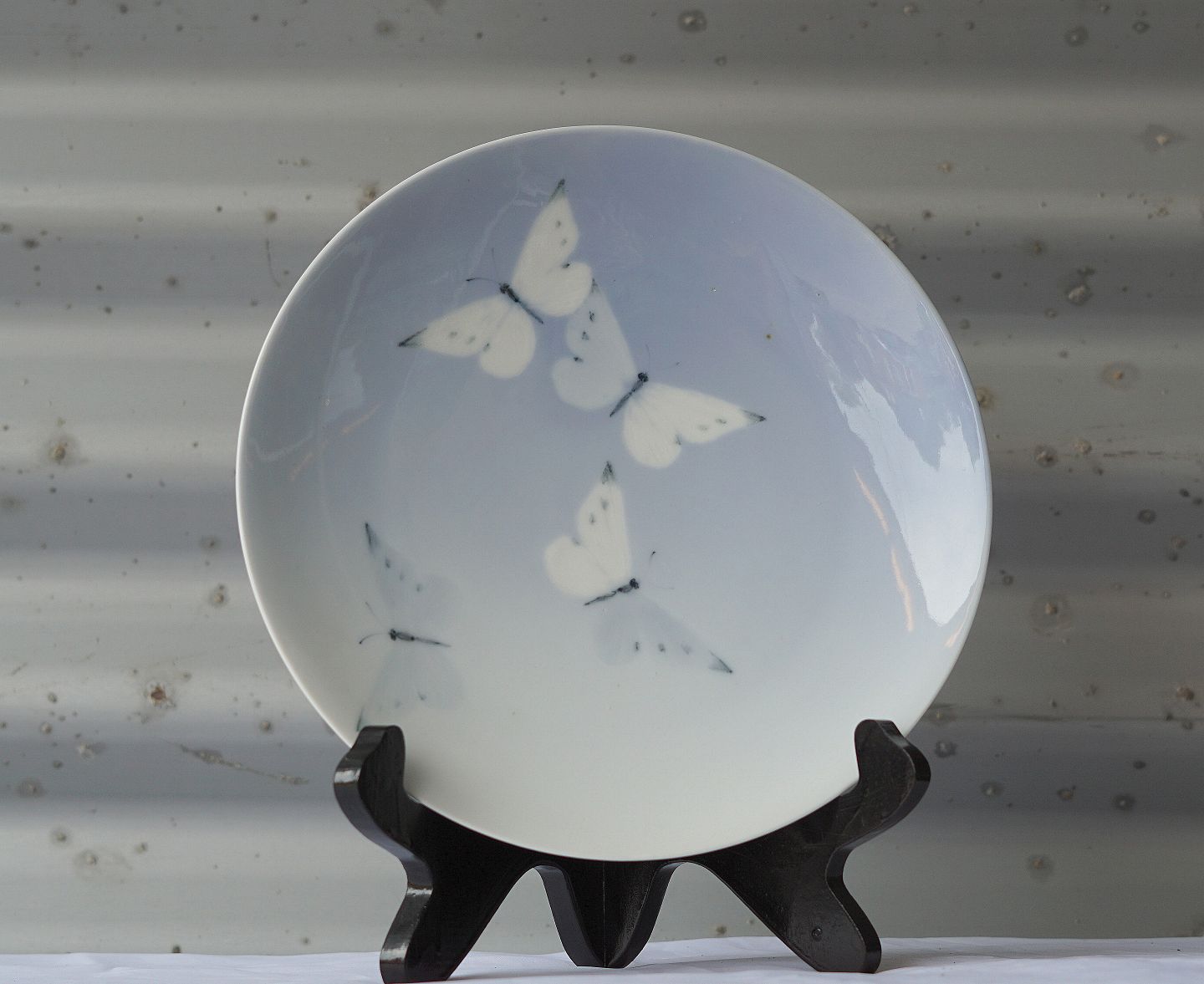 Lyseblå platte med sommerfugle. Den KGL. platte er lavet ca. 1893-1898