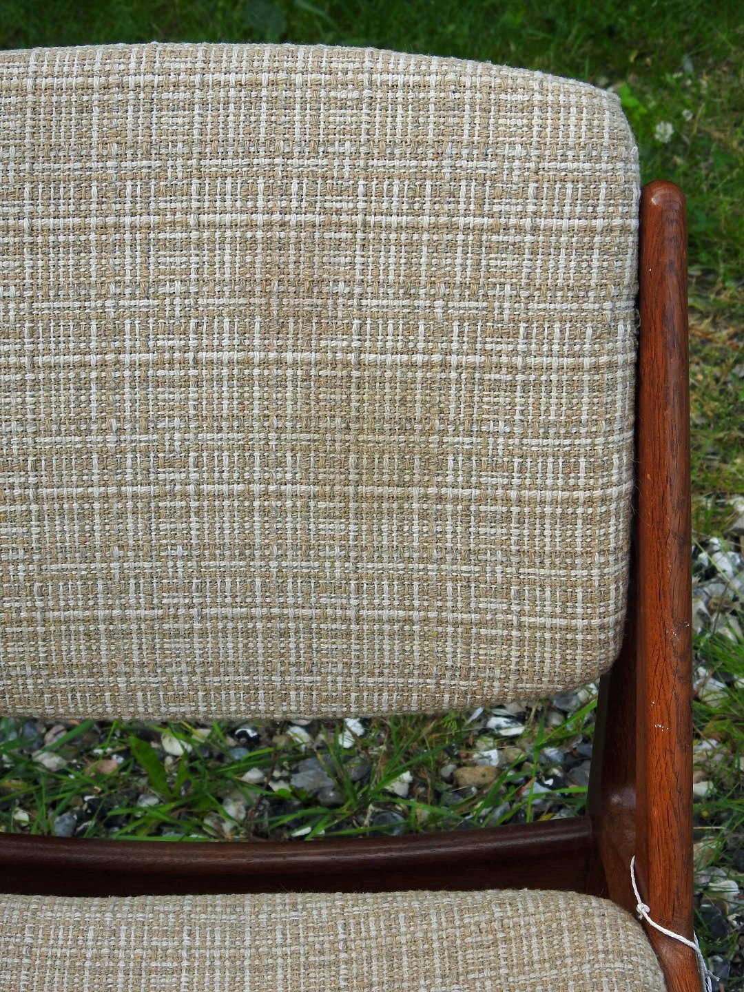Pæn stand med lyst stofbetrukket sæde og ryg