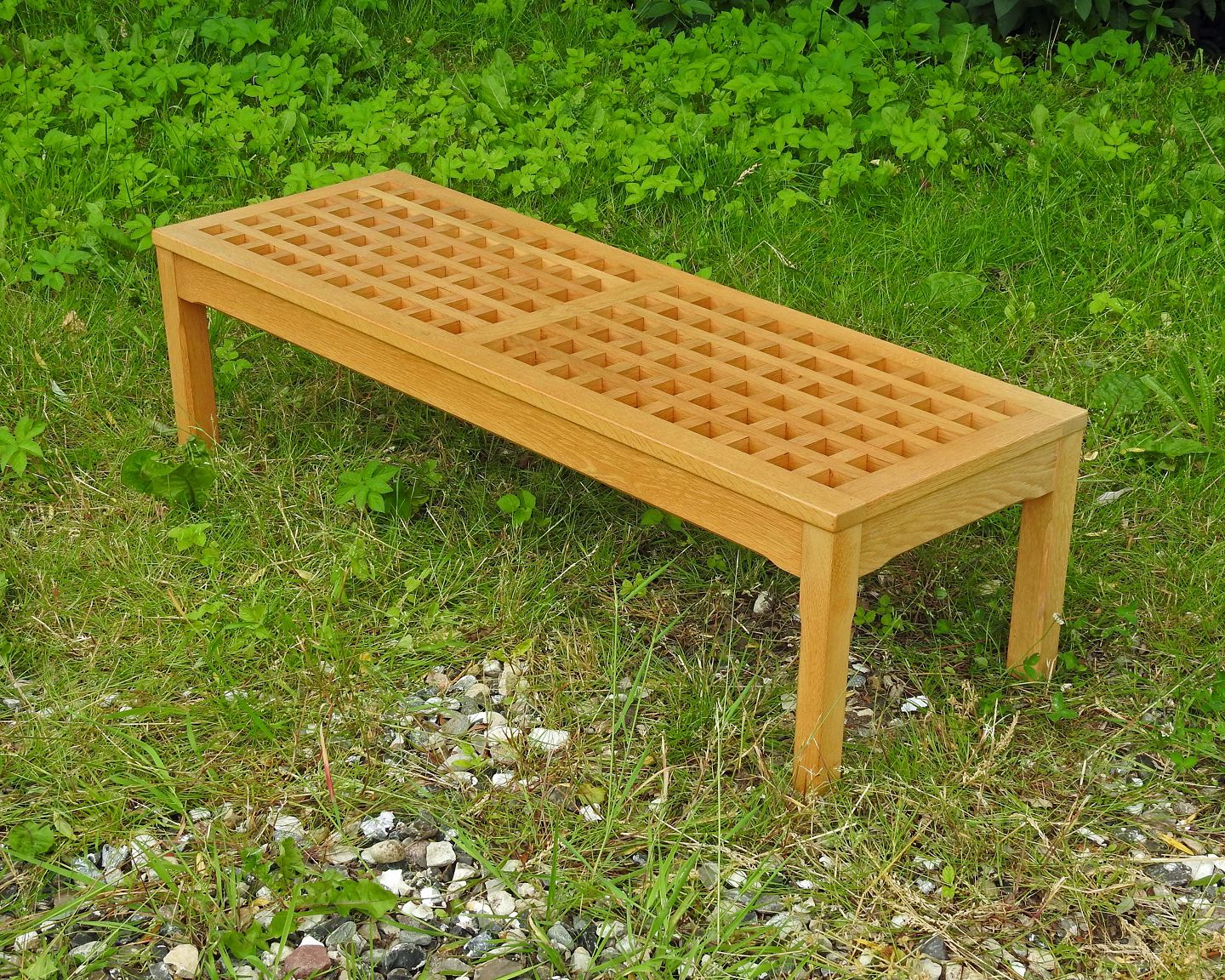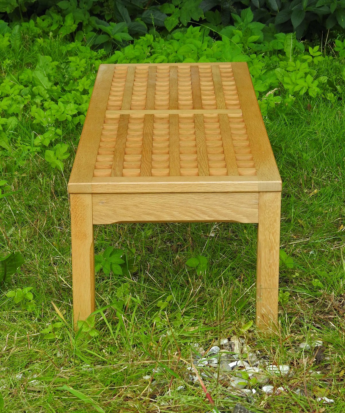 Lav bænk i lakeret egetræ