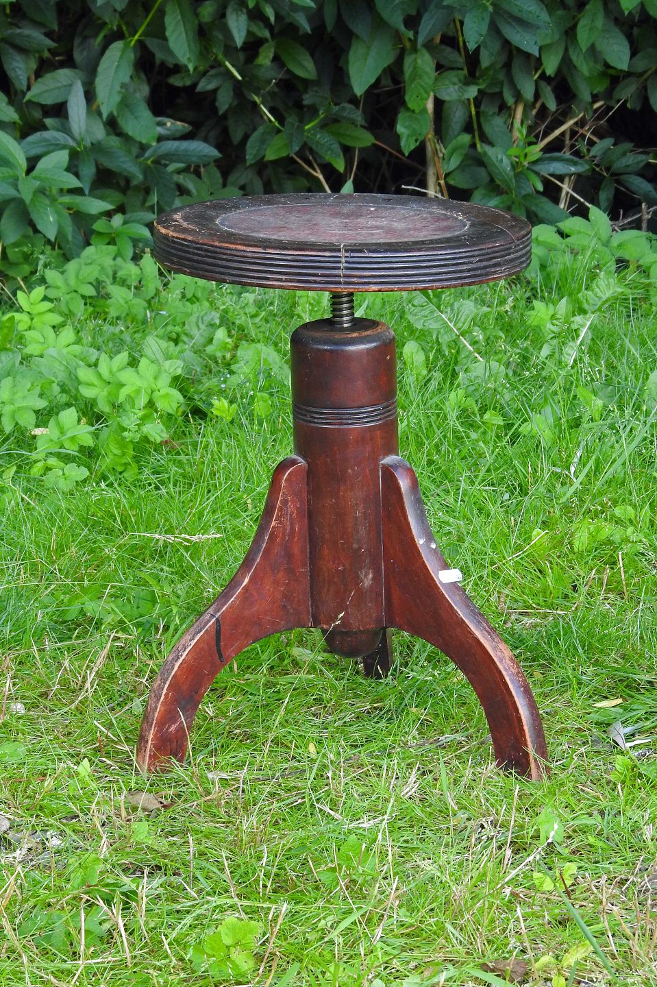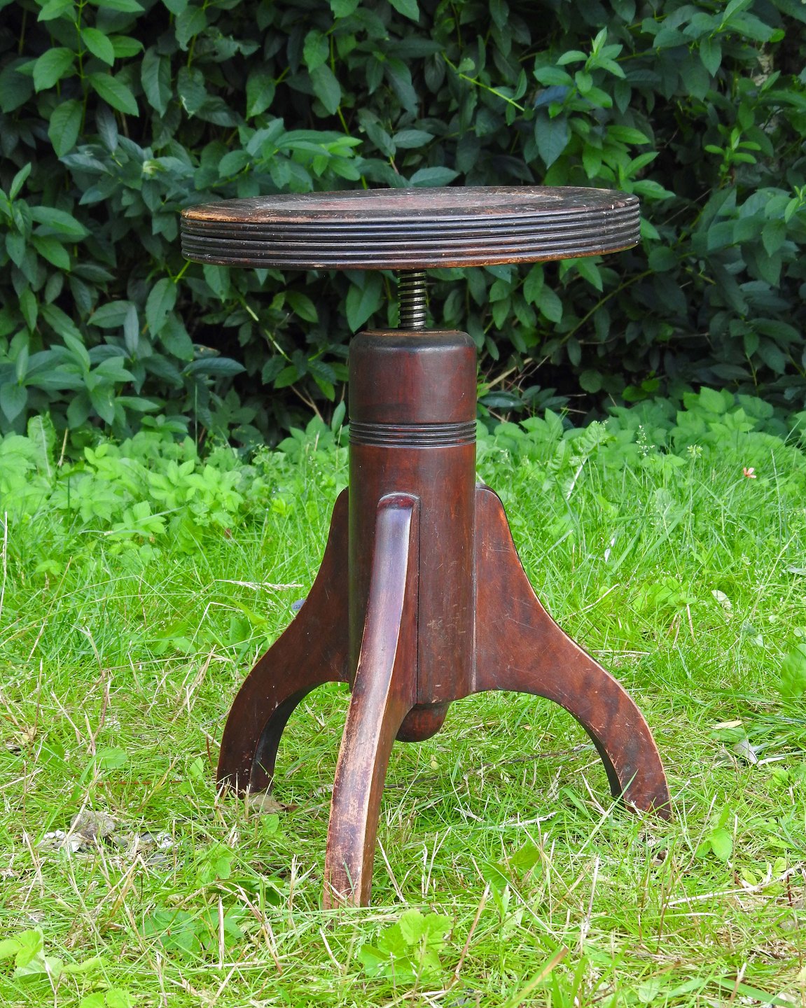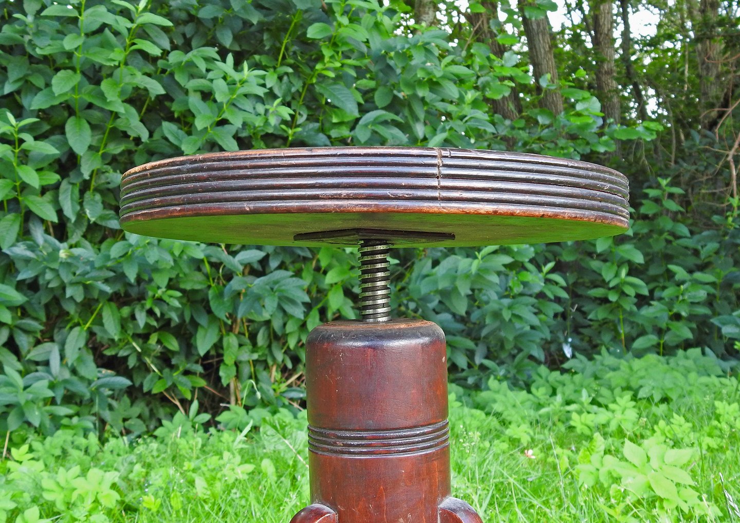 Træ skammel med sæde som skrues op og ned i i højden
