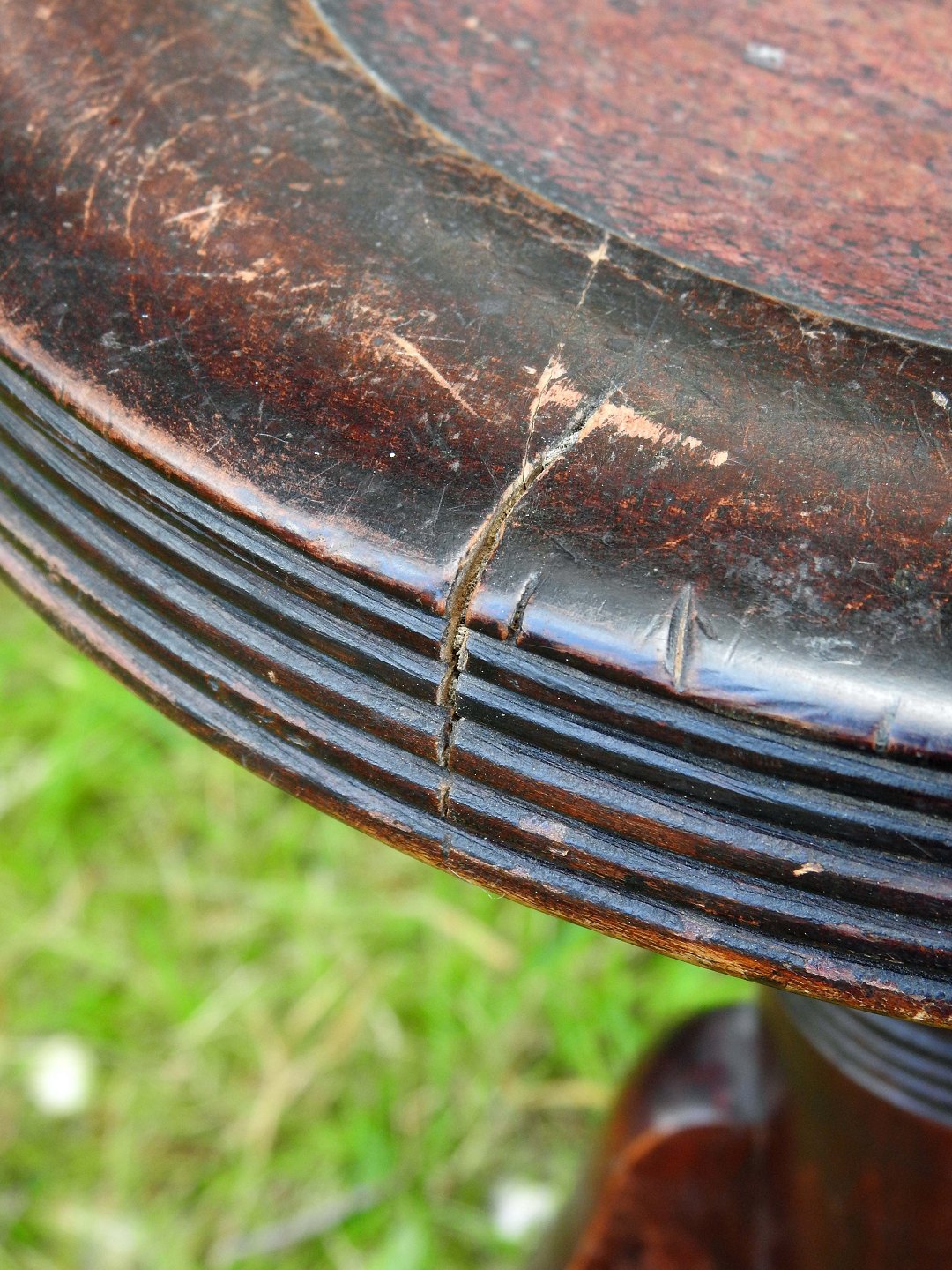 Brugsspor på ben samt mindre revne i kant af sædet