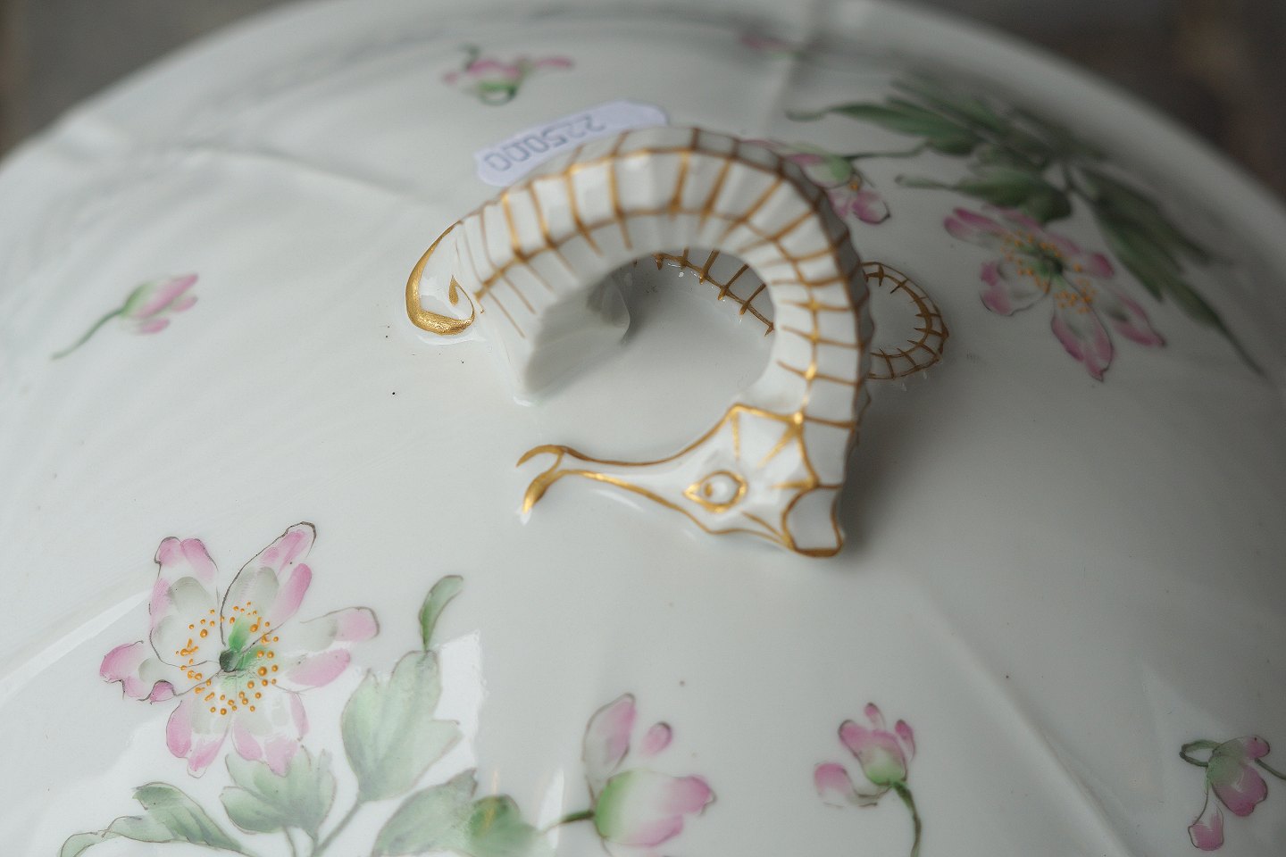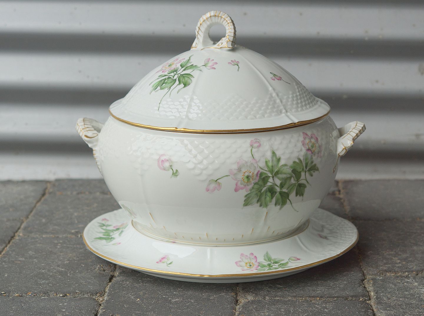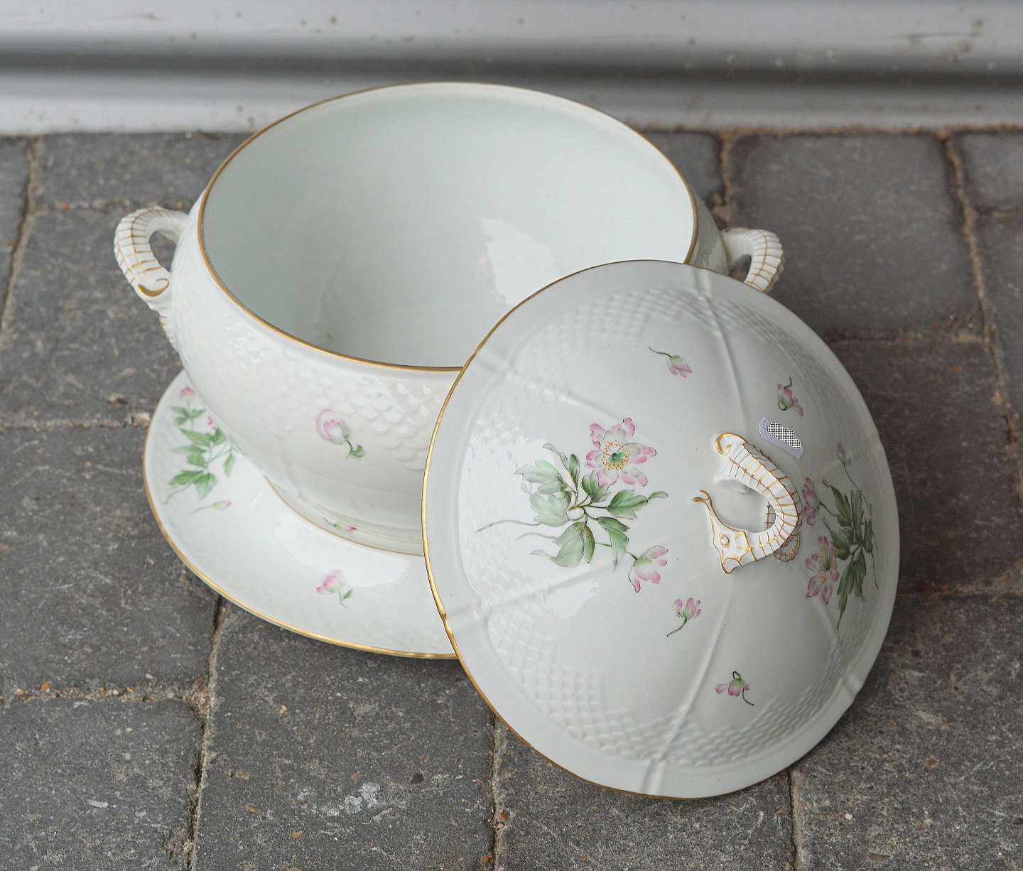 Stor suppeterrin, bemalet med blomster med underfad