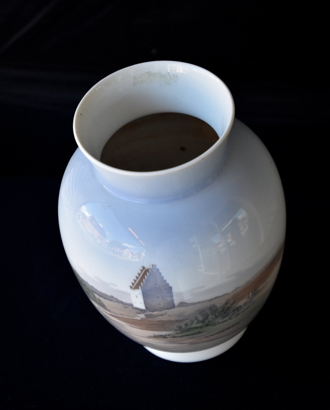 Royal Copenhagen vase, 4661, dekoration af Den tilsandet Kirke i Skagen. Sct. Laurentius Kirke fra slutningen af 1930èrne