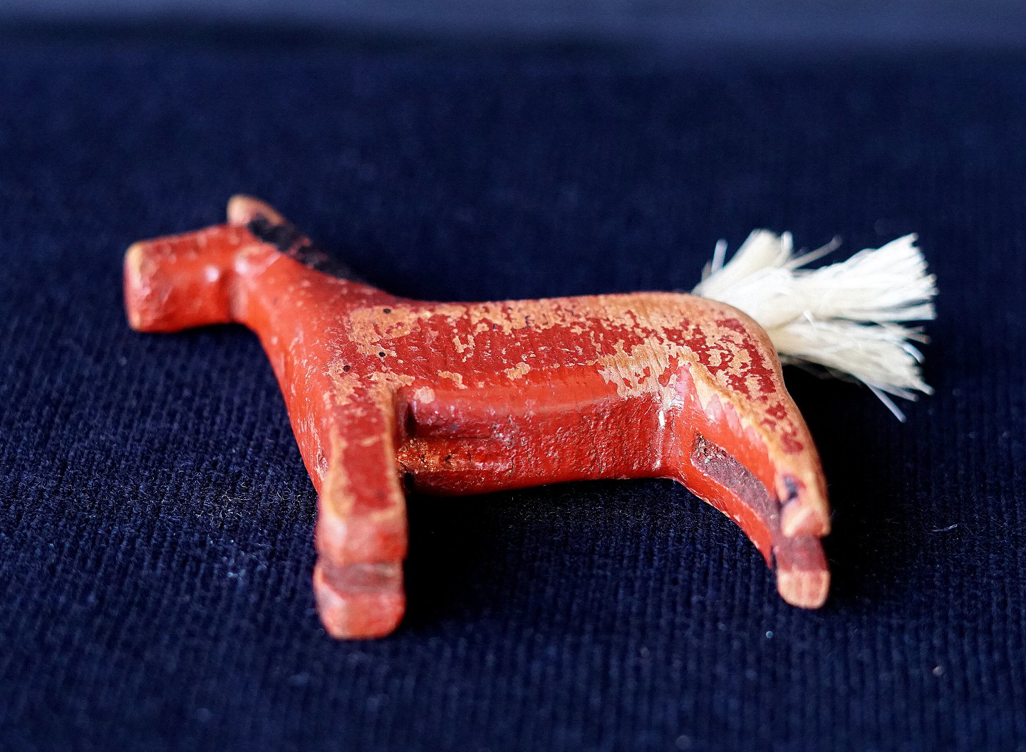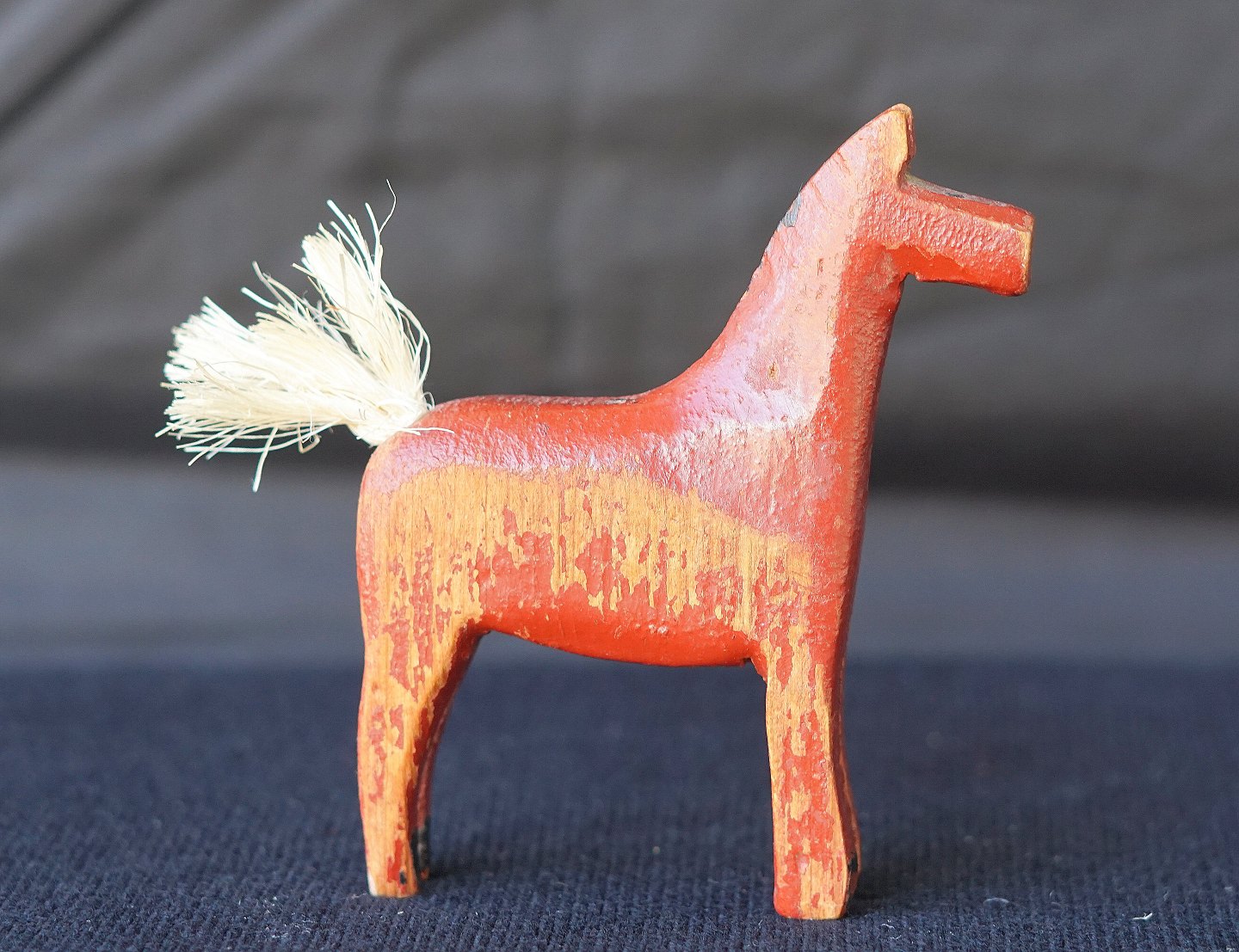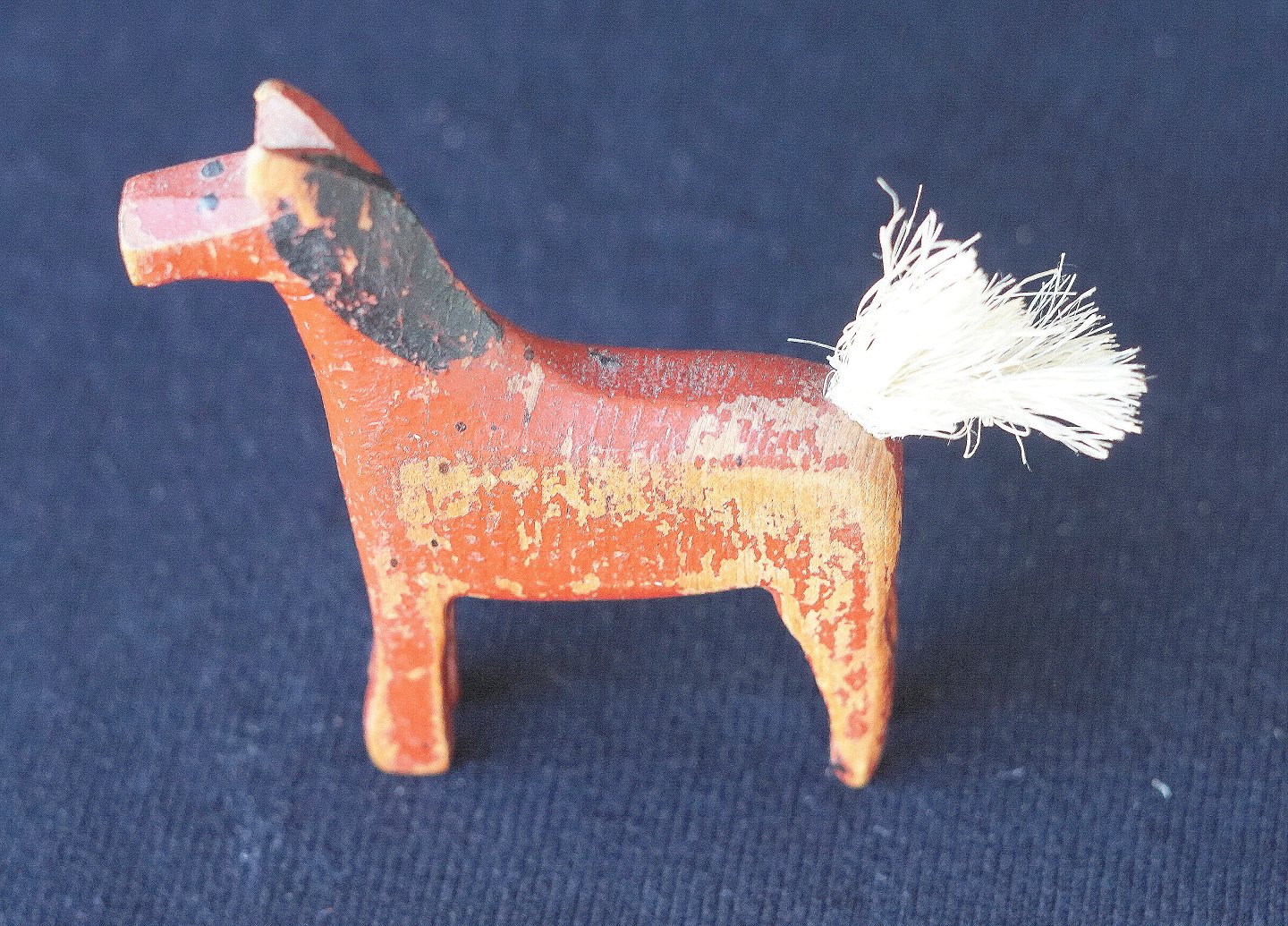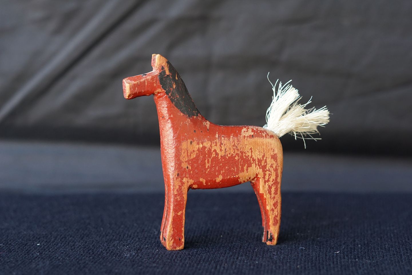 Rødbrunfængsels træhest, hesten har en lys hale, der er malet en sort manke på hesten