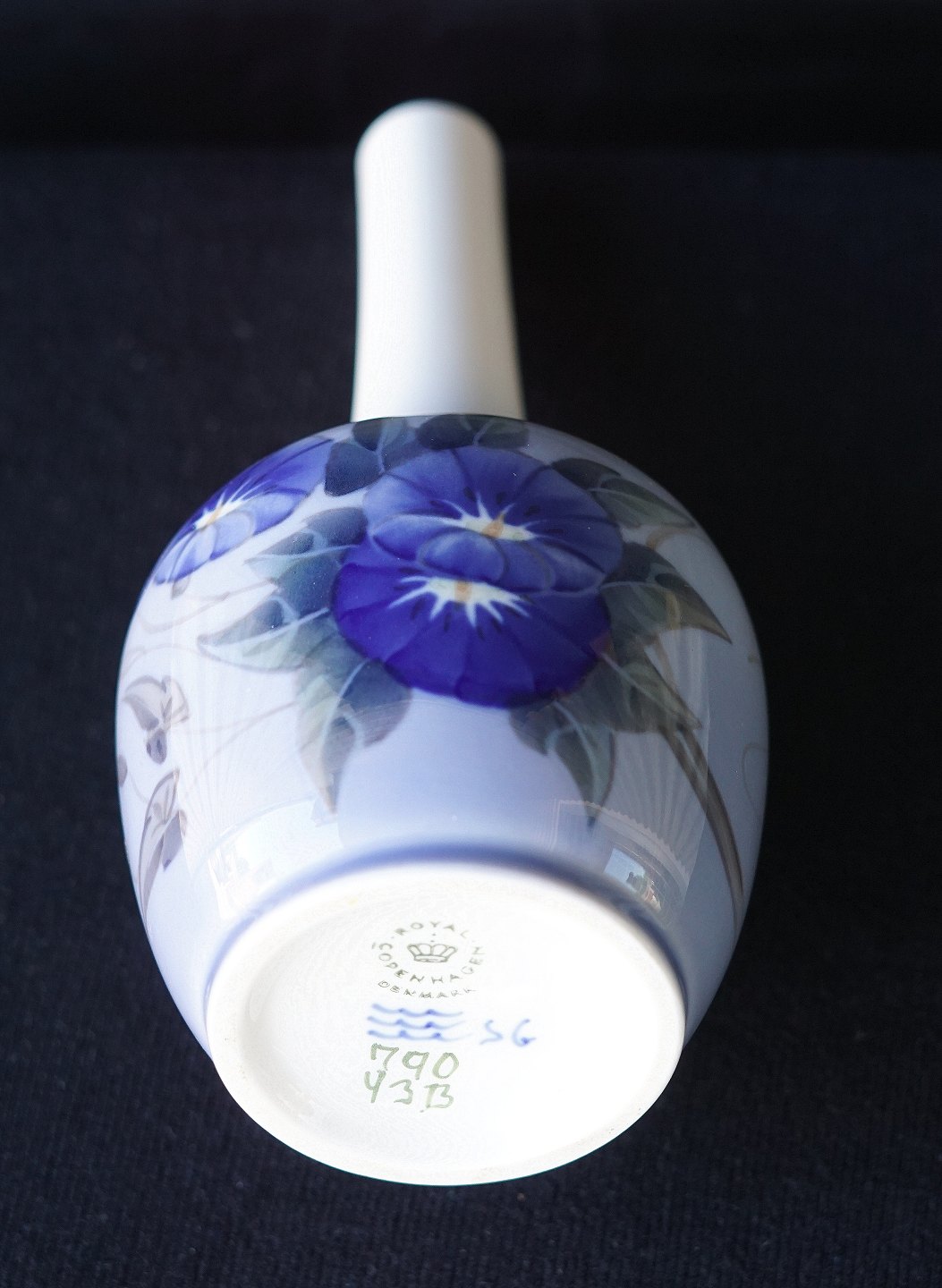 Royal Copenhagen, vase 790/43B. Motivet er en pragtperle i blå