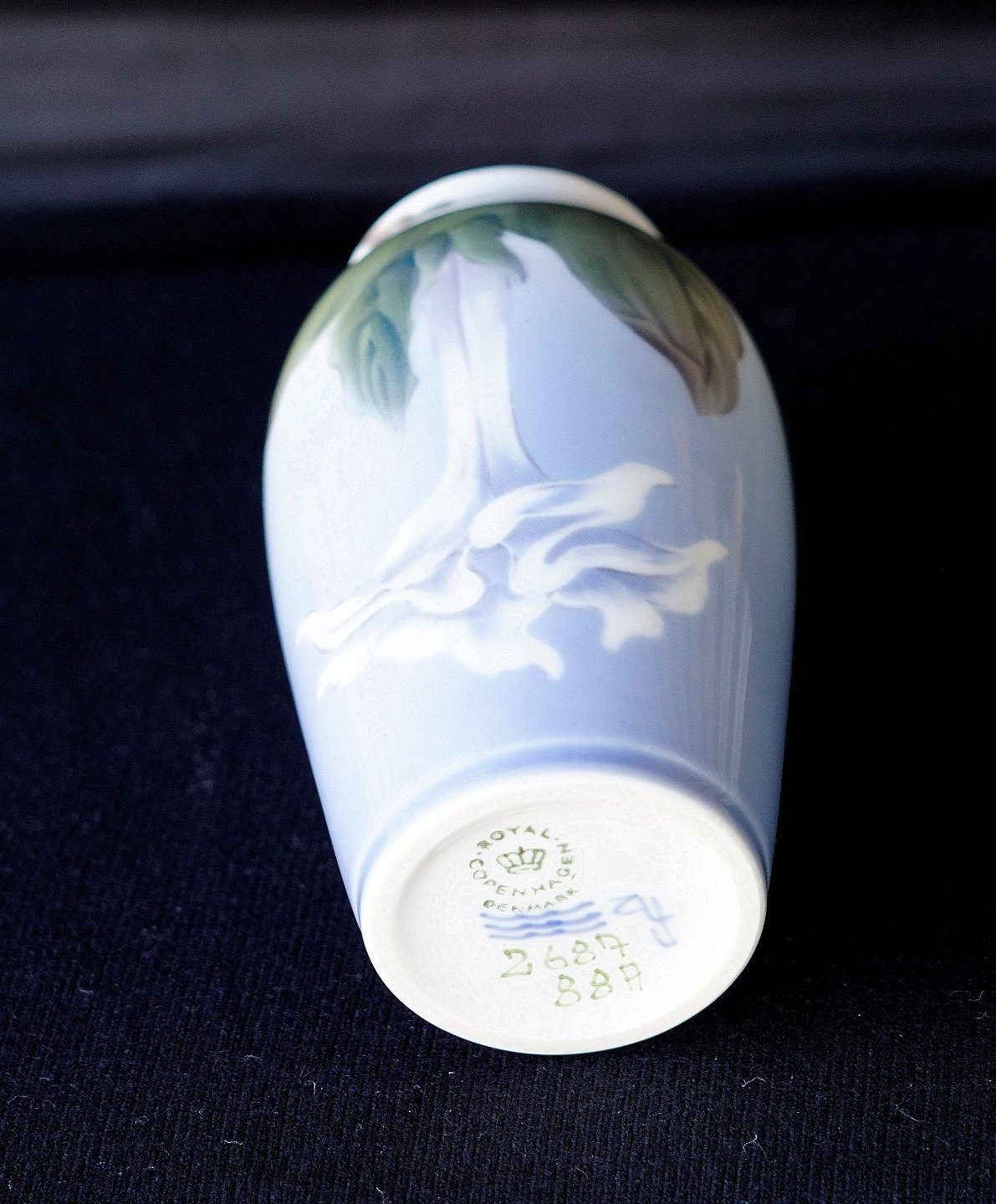 Royal Copenhagen, vase 2687/88-5. Dekoration blomst med grønne blade. Den affotograferet er mærket 88A