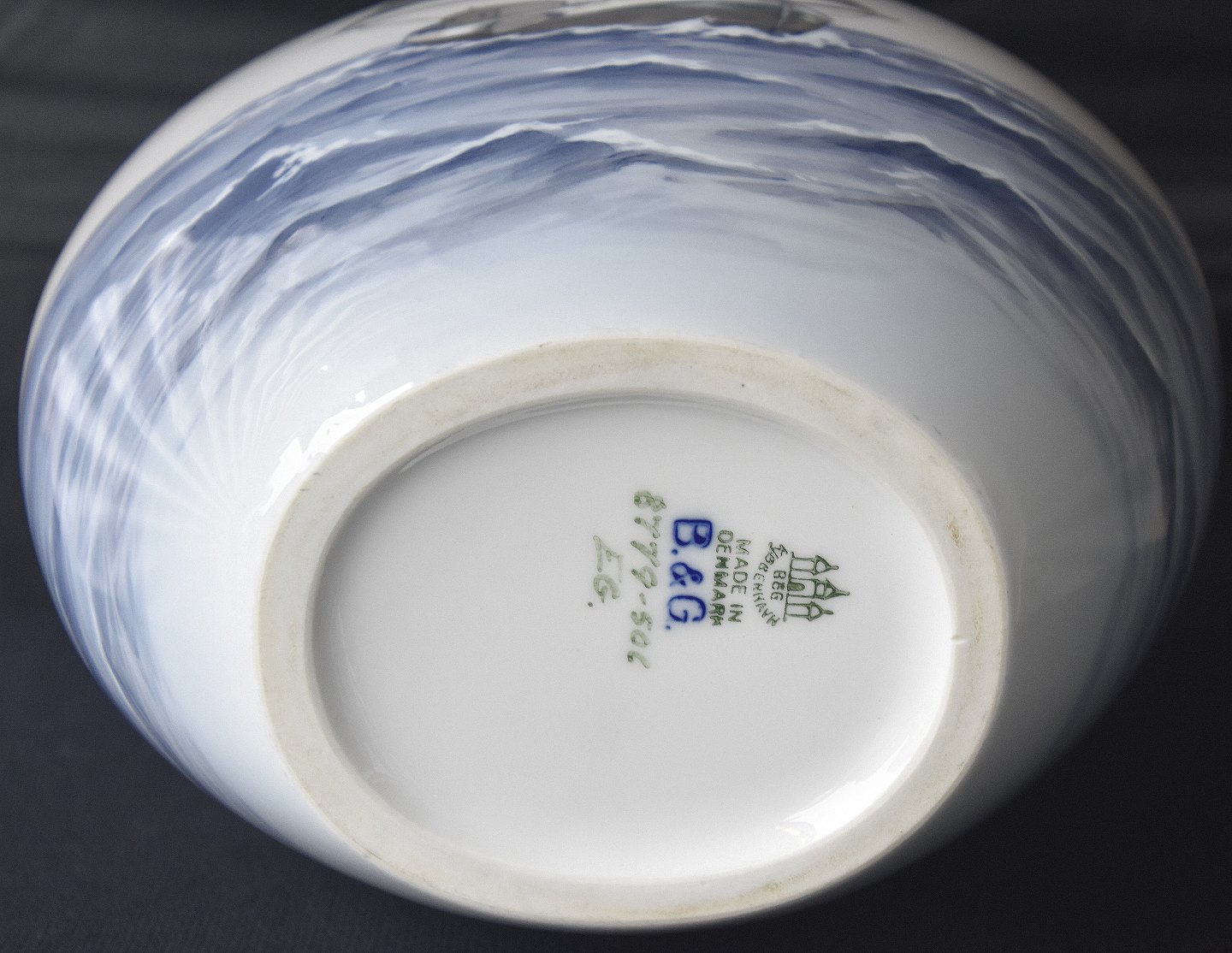 Bing & Grøndahl, B&G, oval, sejlskib, bølger, porcelæn, vase