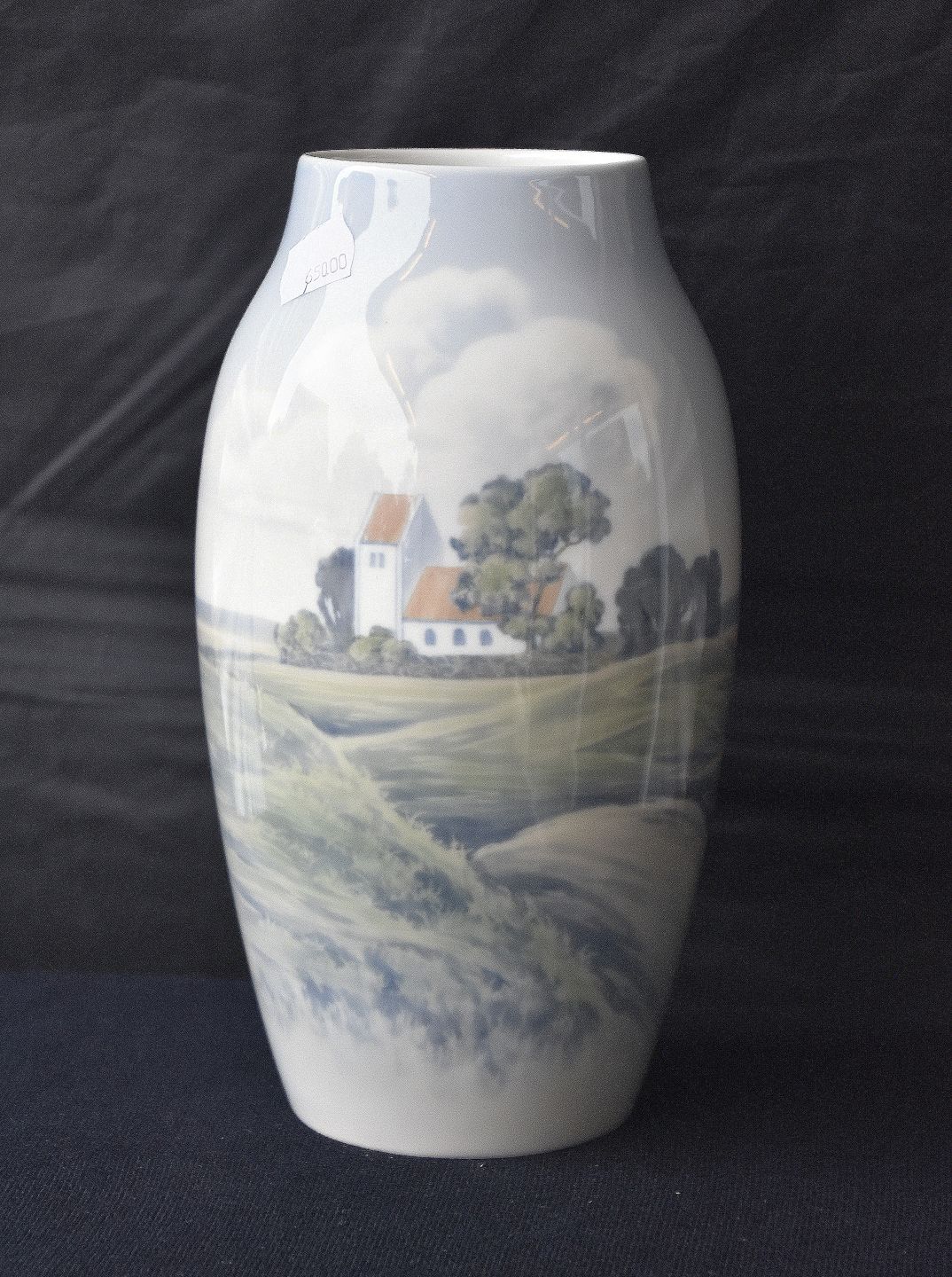 Bing & Grøndahl, B&G, porcelæn, vase, landskab, landsbykirke