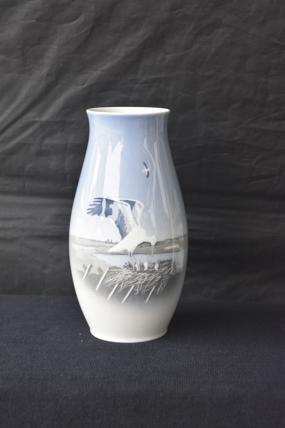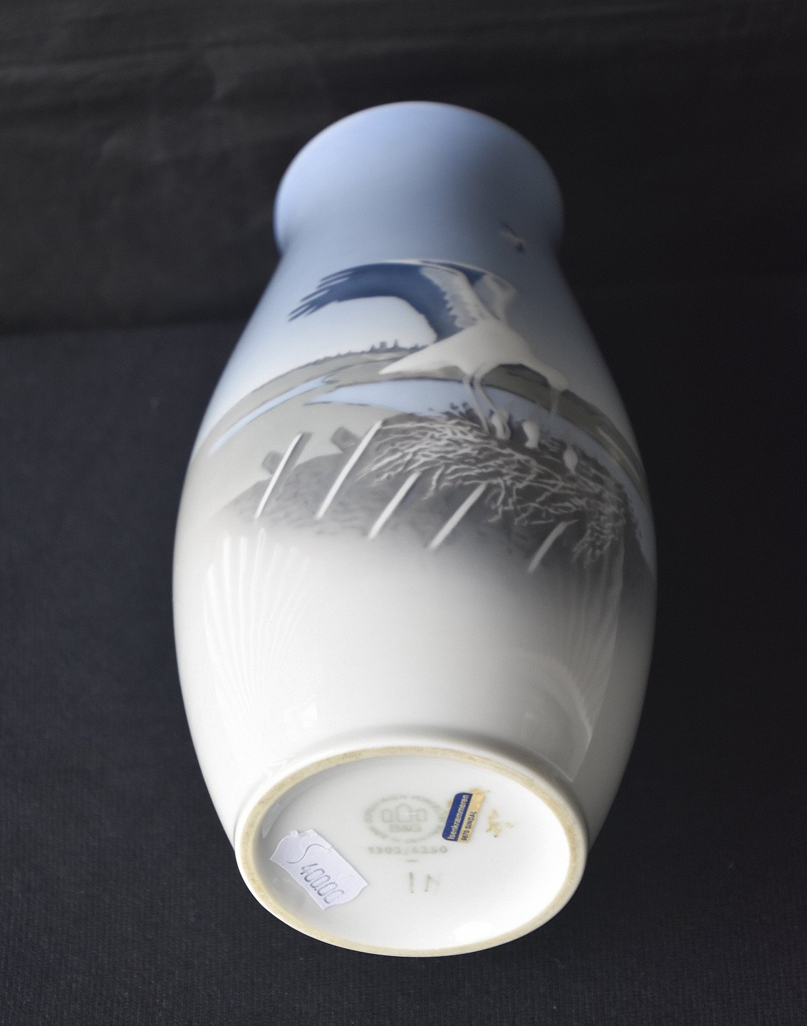 Bing & Grøndahl, B&G, porcelæn, vase, stork, storkerede, unger, hus, tag