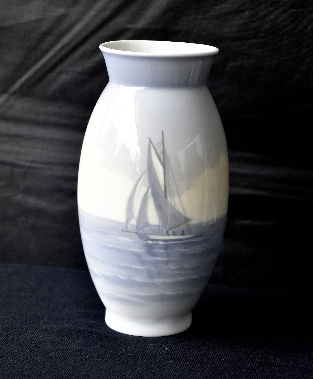 Bing & Grøndahl, B&G, porcelæn, vase, sejlskib, hav