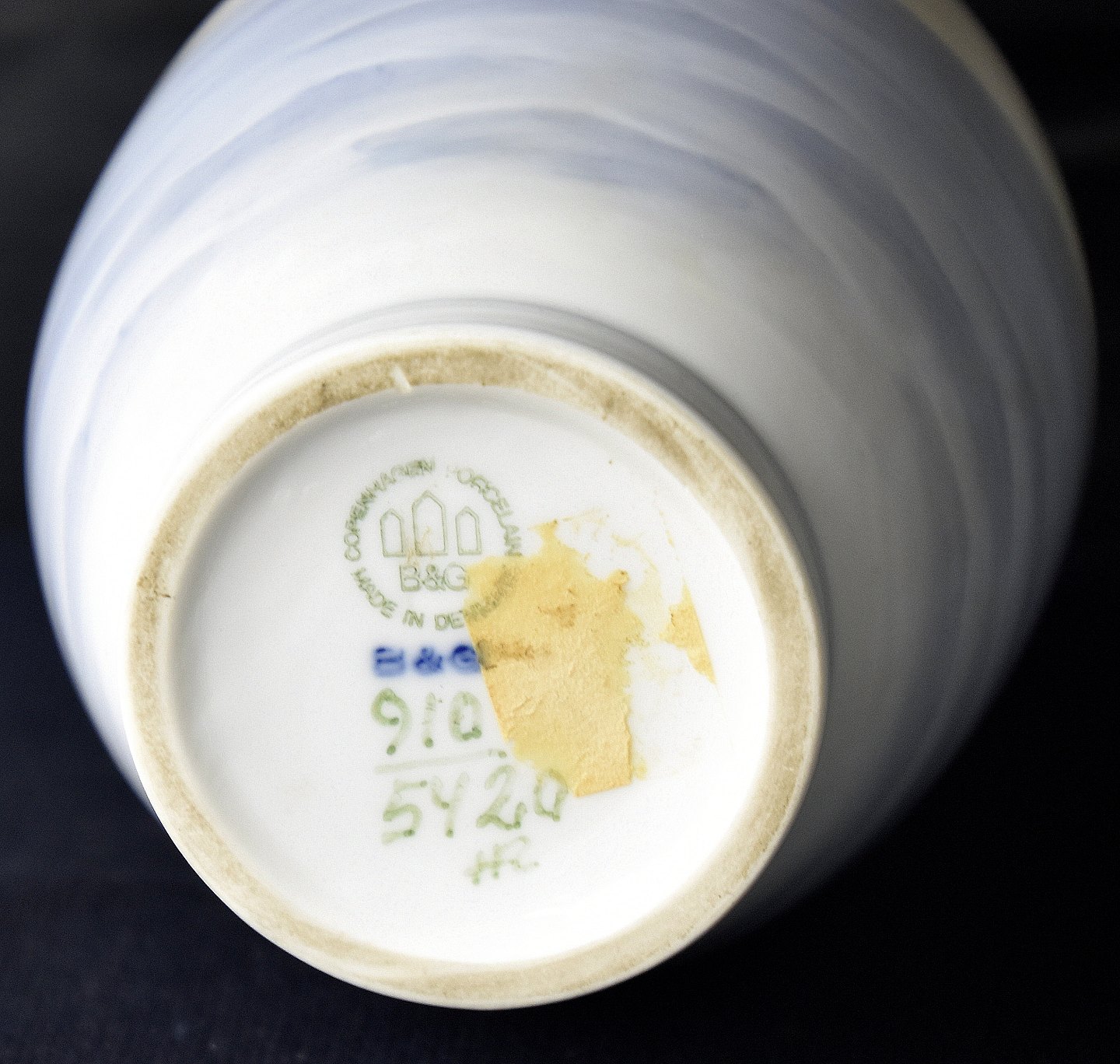 Bing & Grøndahl, vase 910-5420, 1. sortering. Motivet på vasen er et sejlskib på åbent Hav