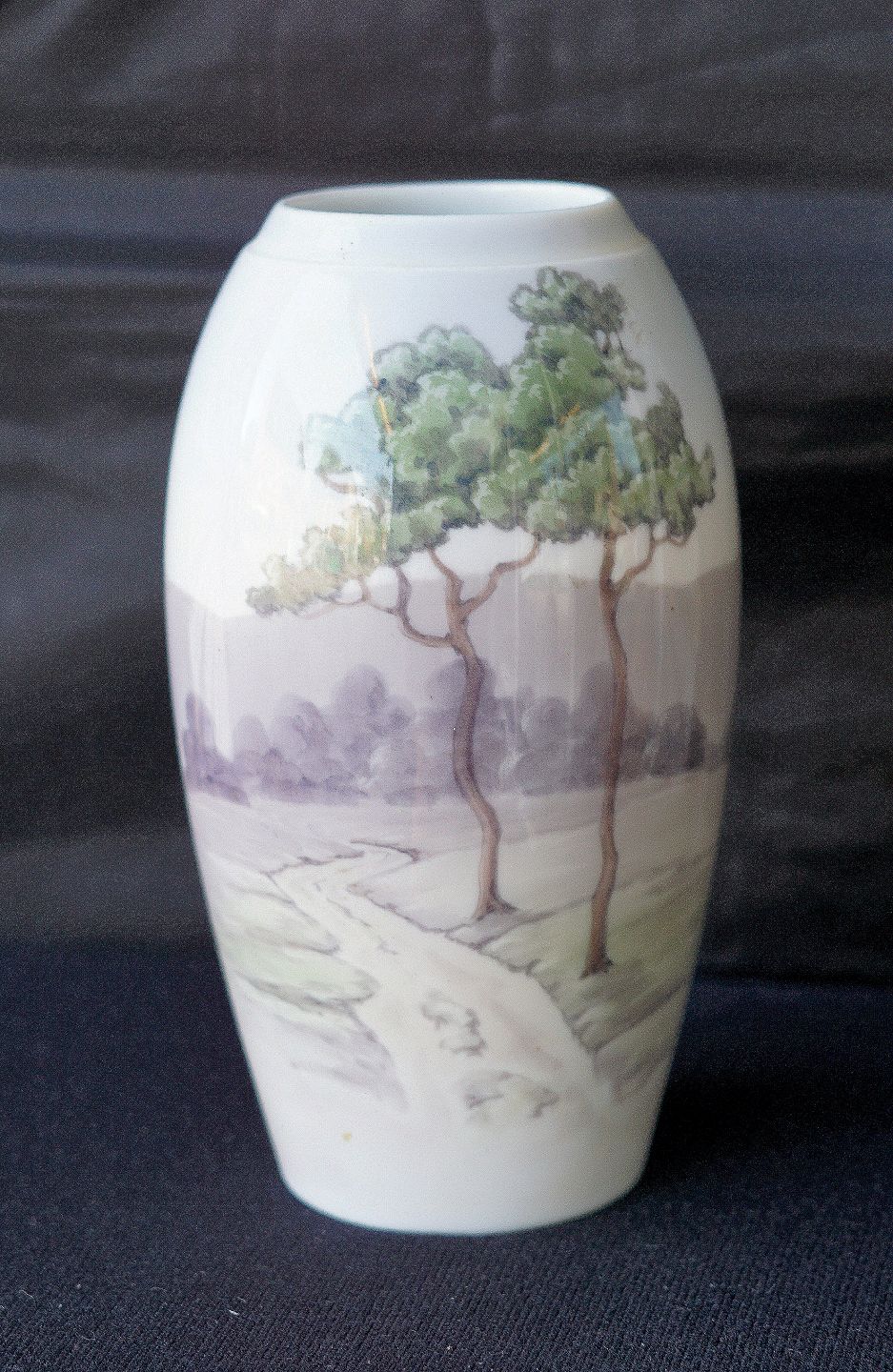 Motiv på vasen er landskab med 2 træer med grønne kroner