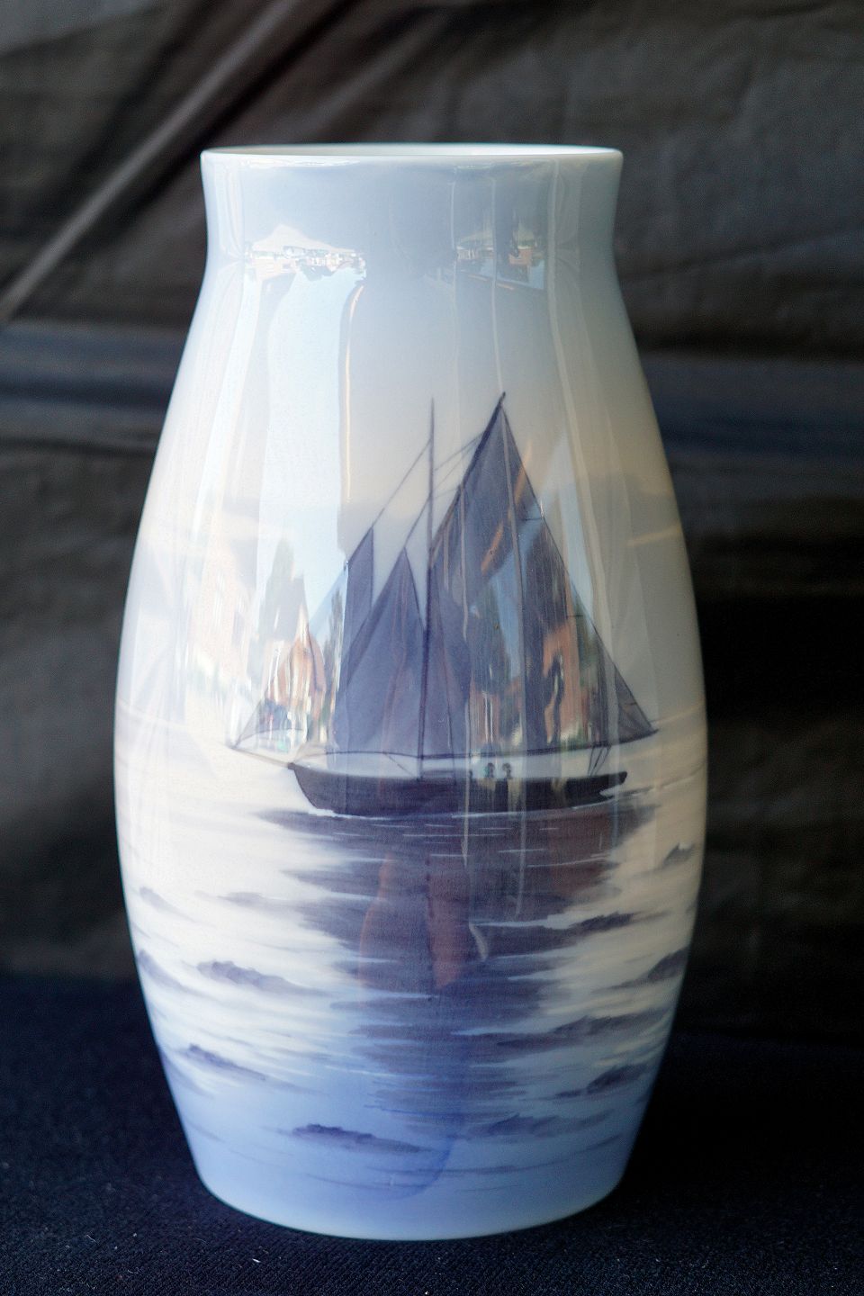 Bing & Grøndahl, B&G, vase, porcelæn, sejlskib, sejl, skib, brune sejl, brune