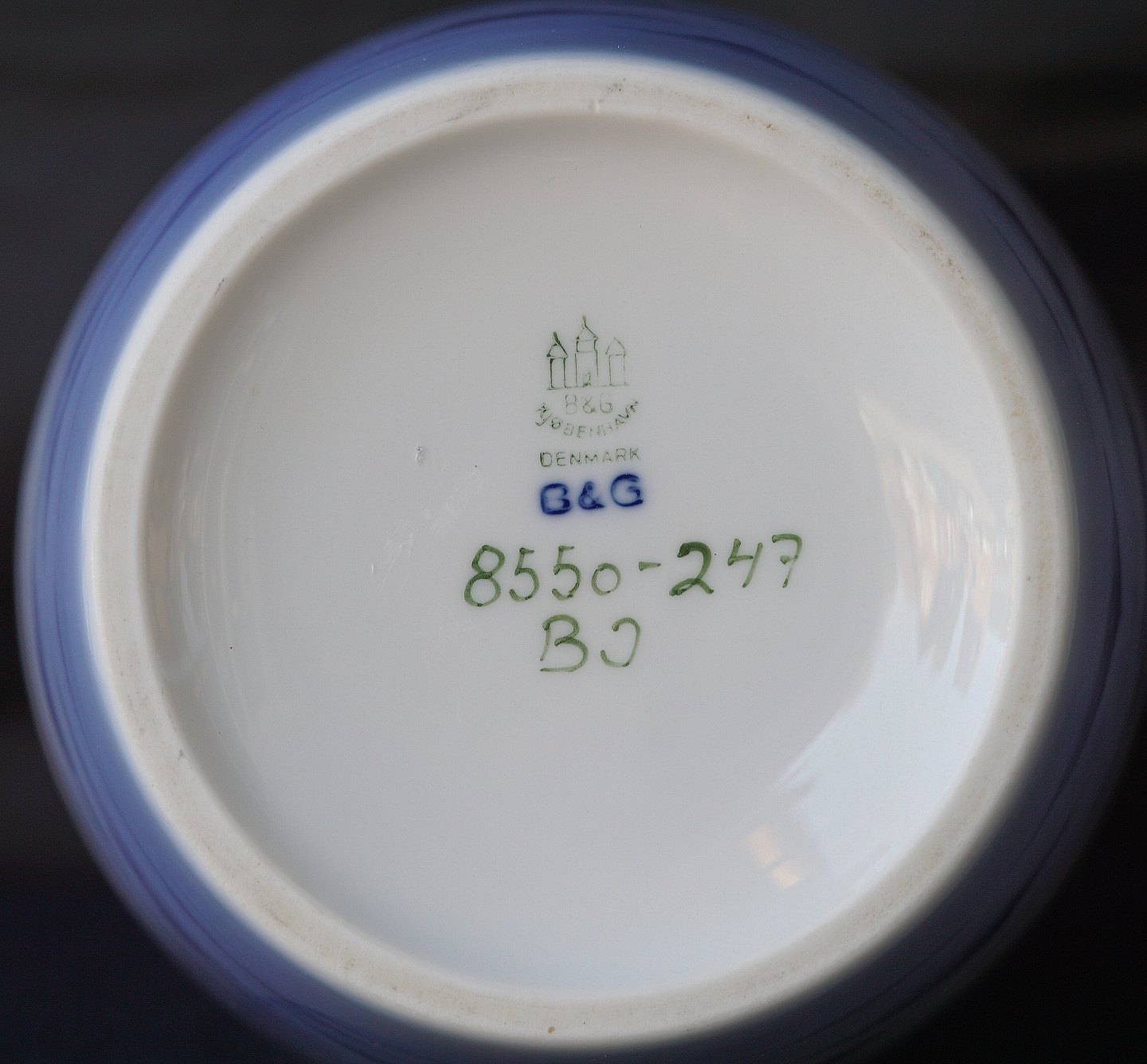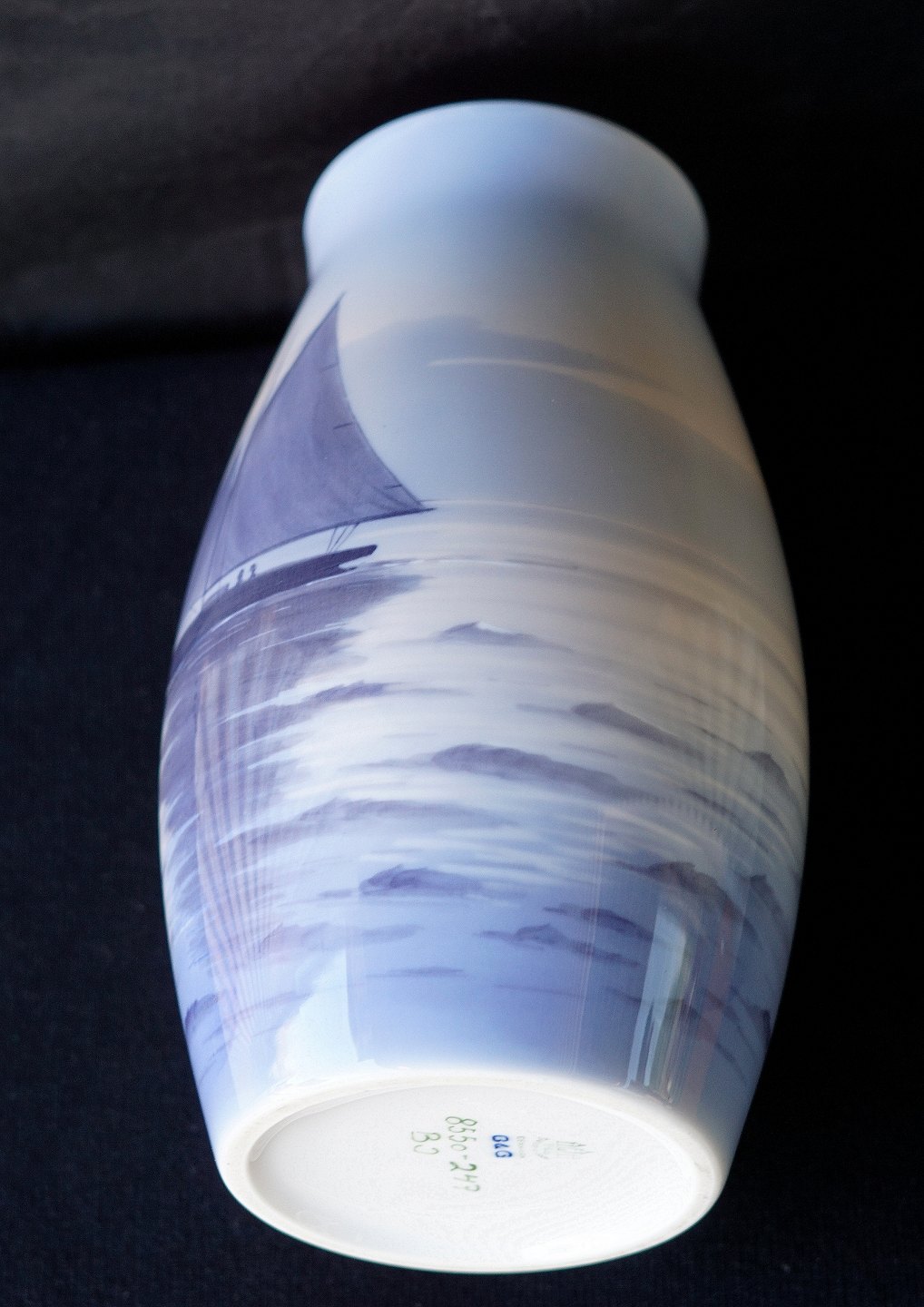 Bing & Grøndahl, vase 8550-247. Dekoration på vasen er et sejlskib med brune sejl