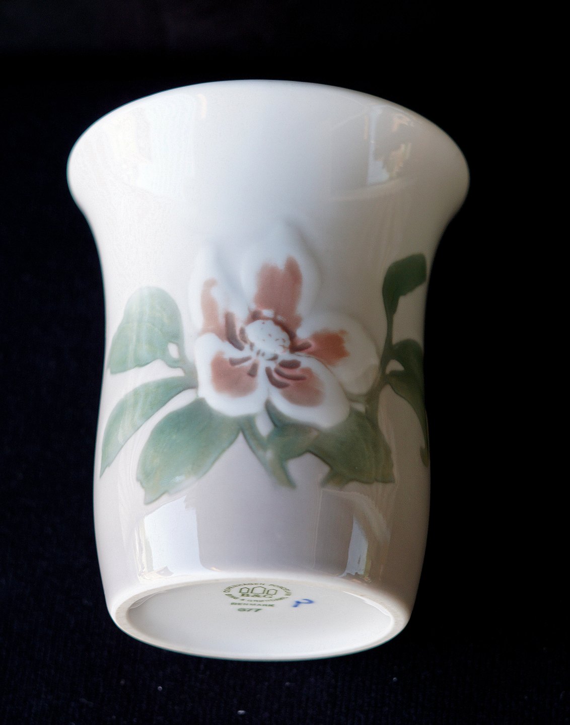 Bing & Grøndahl, vase, 677, vasen er 1. sortering. Dekoration på vasen er lys julerose, vasen er sjælden på grund af den lyse farve, på selve vasen