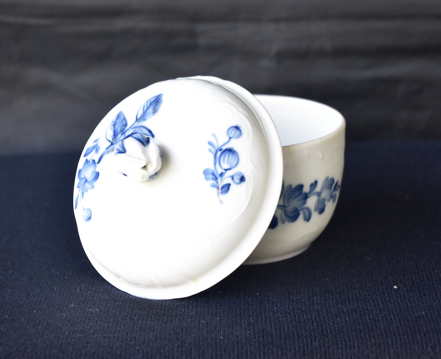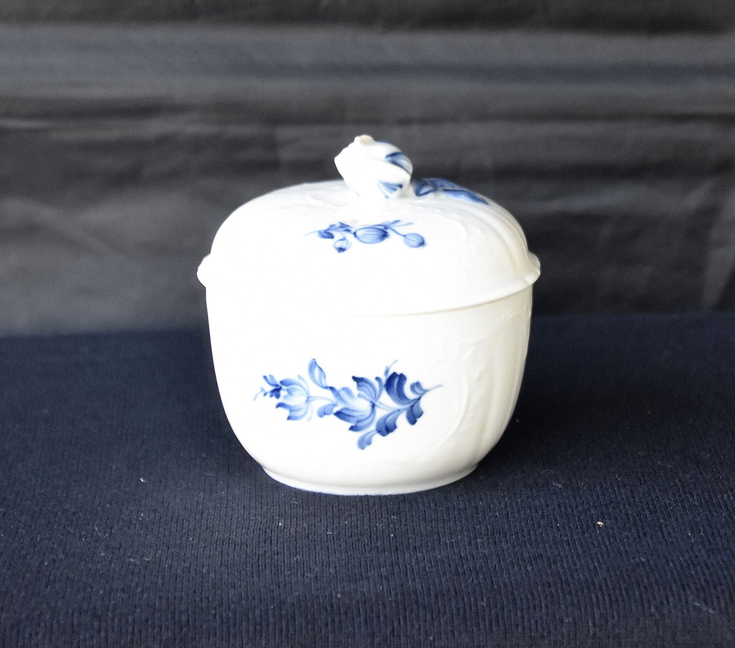 Royal Copenhagen, RC, Den Kongelige Porcelænsfabrik, KGL., Juliane Marie, sukkerskål, blåblomstret, enkedronning, låg
