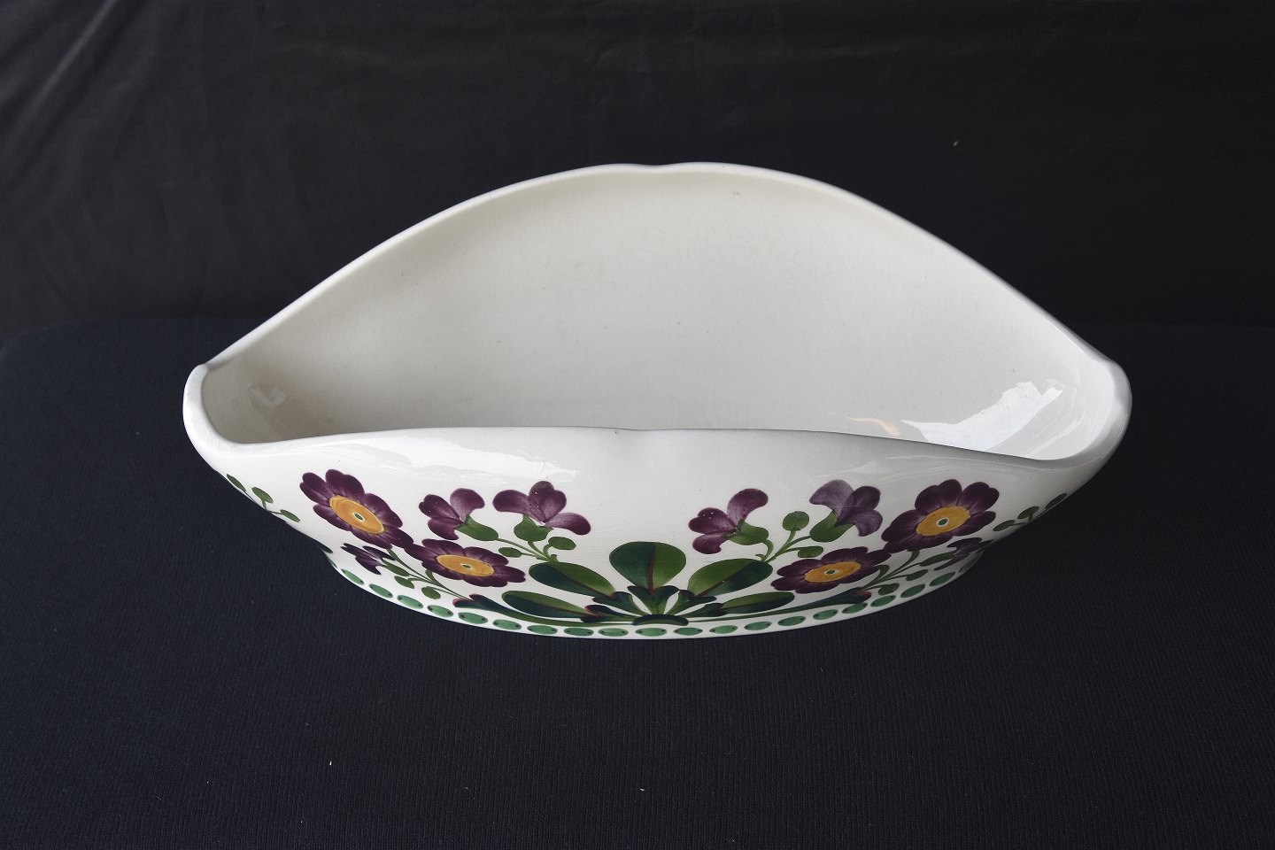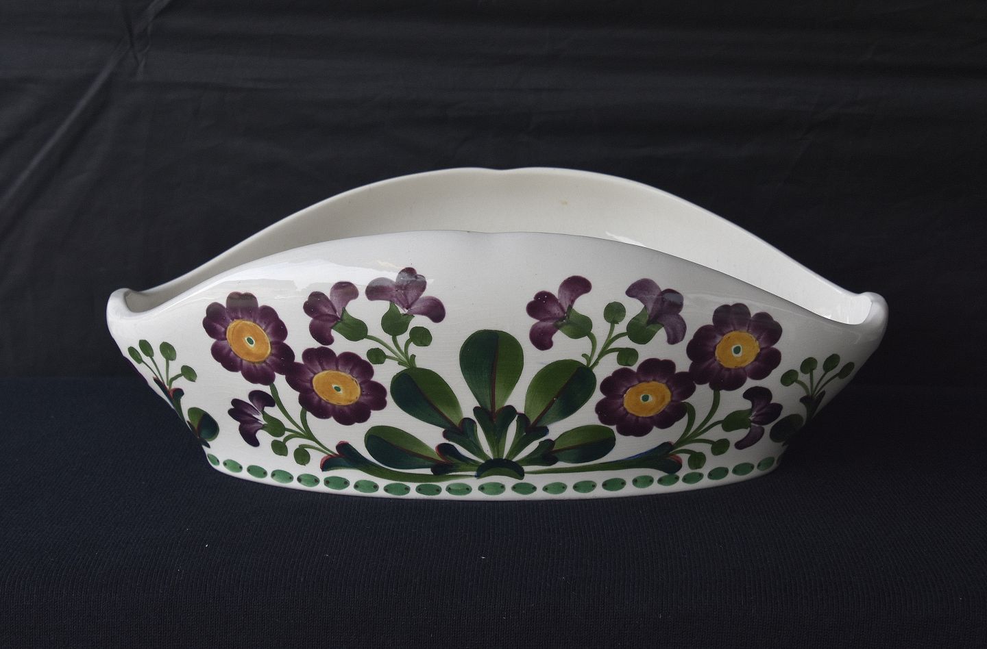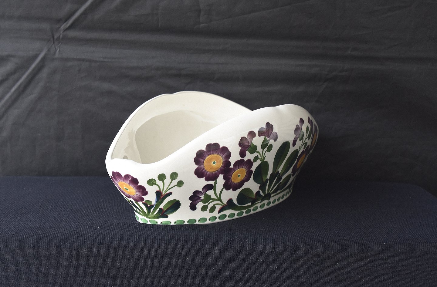 Jardiniere 117/115, blomsterskål, lilla og gule blomster og grønne blade
