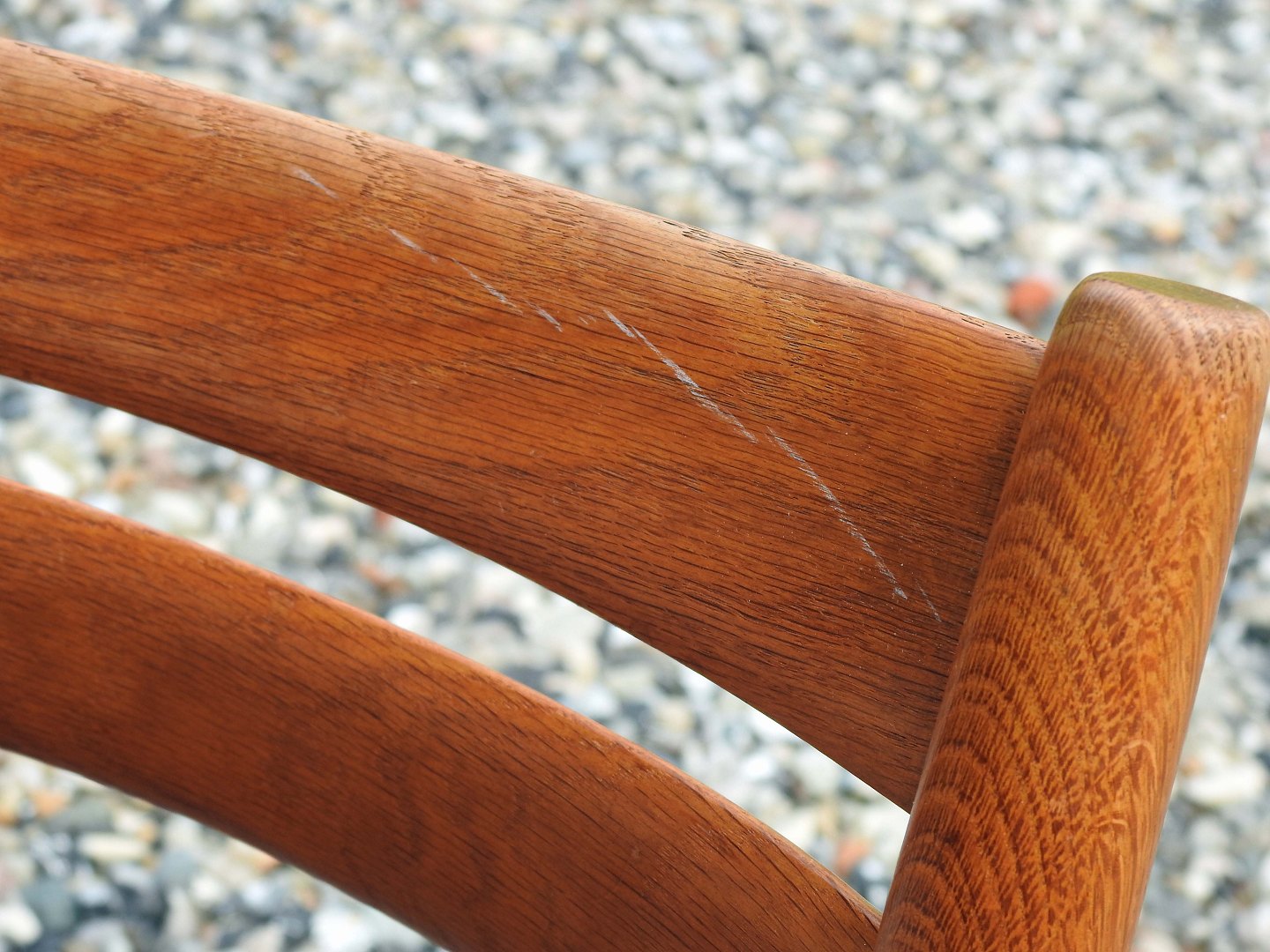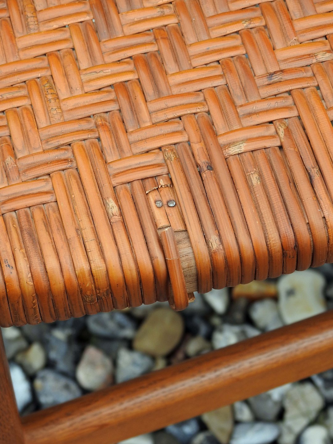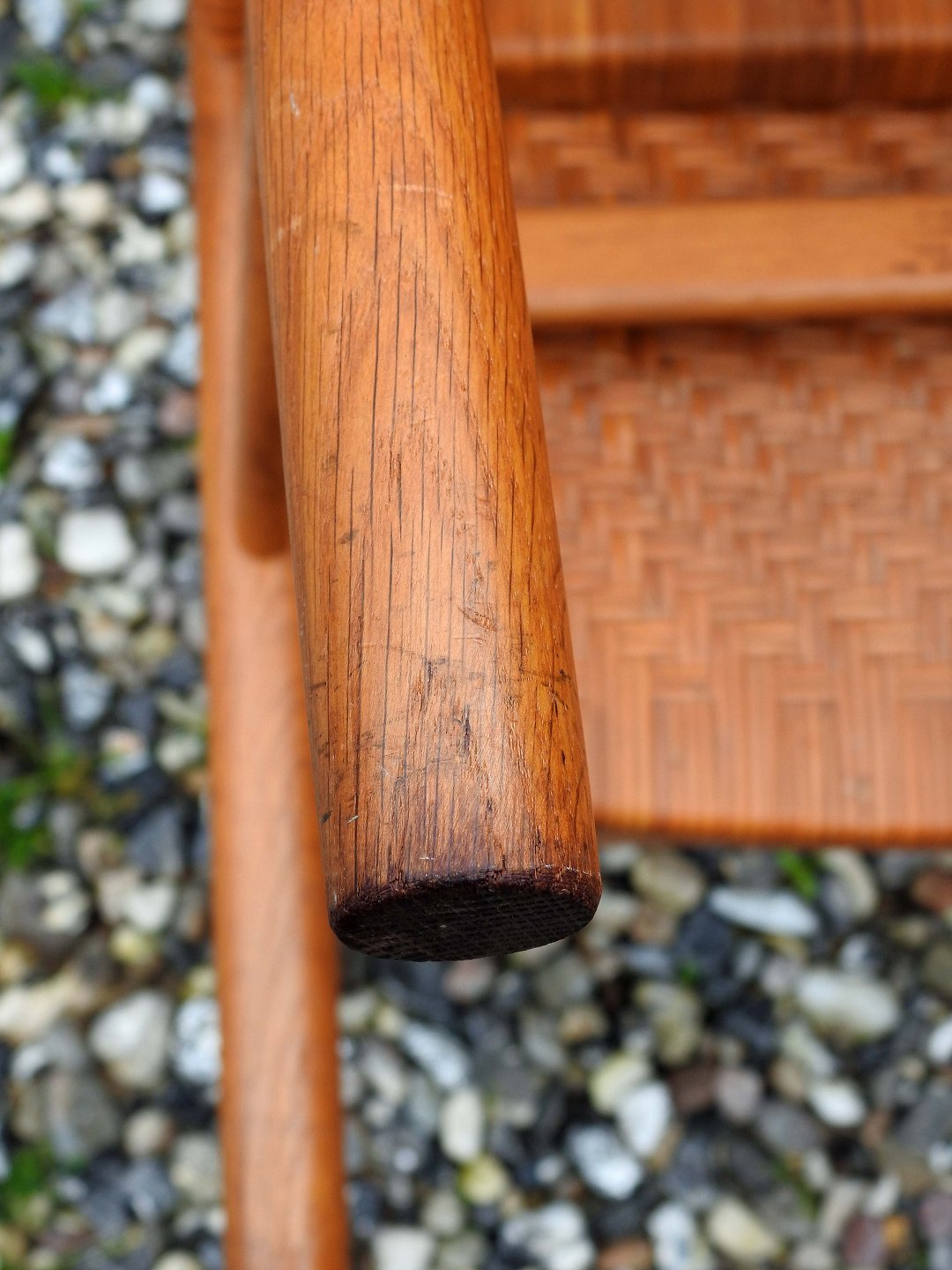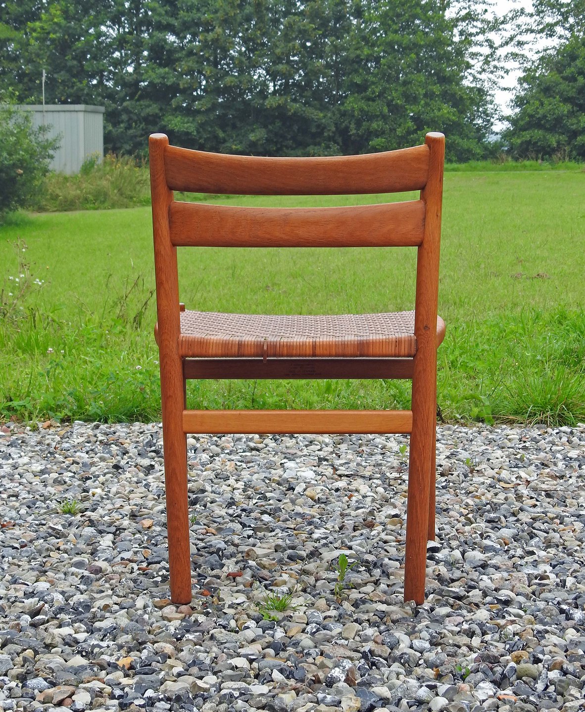 Stolene har en flot gylden glød og sæderne er er fremstillet af peddigrørflet, som sjælden ses på denne model.