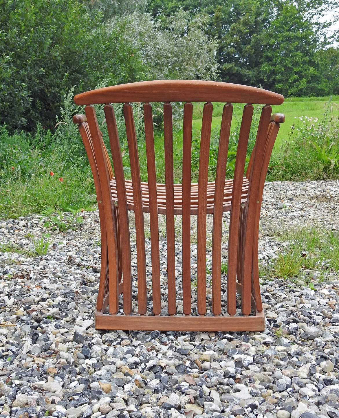 Armstol med tremmer i teaktræ i dansk møbeldesign