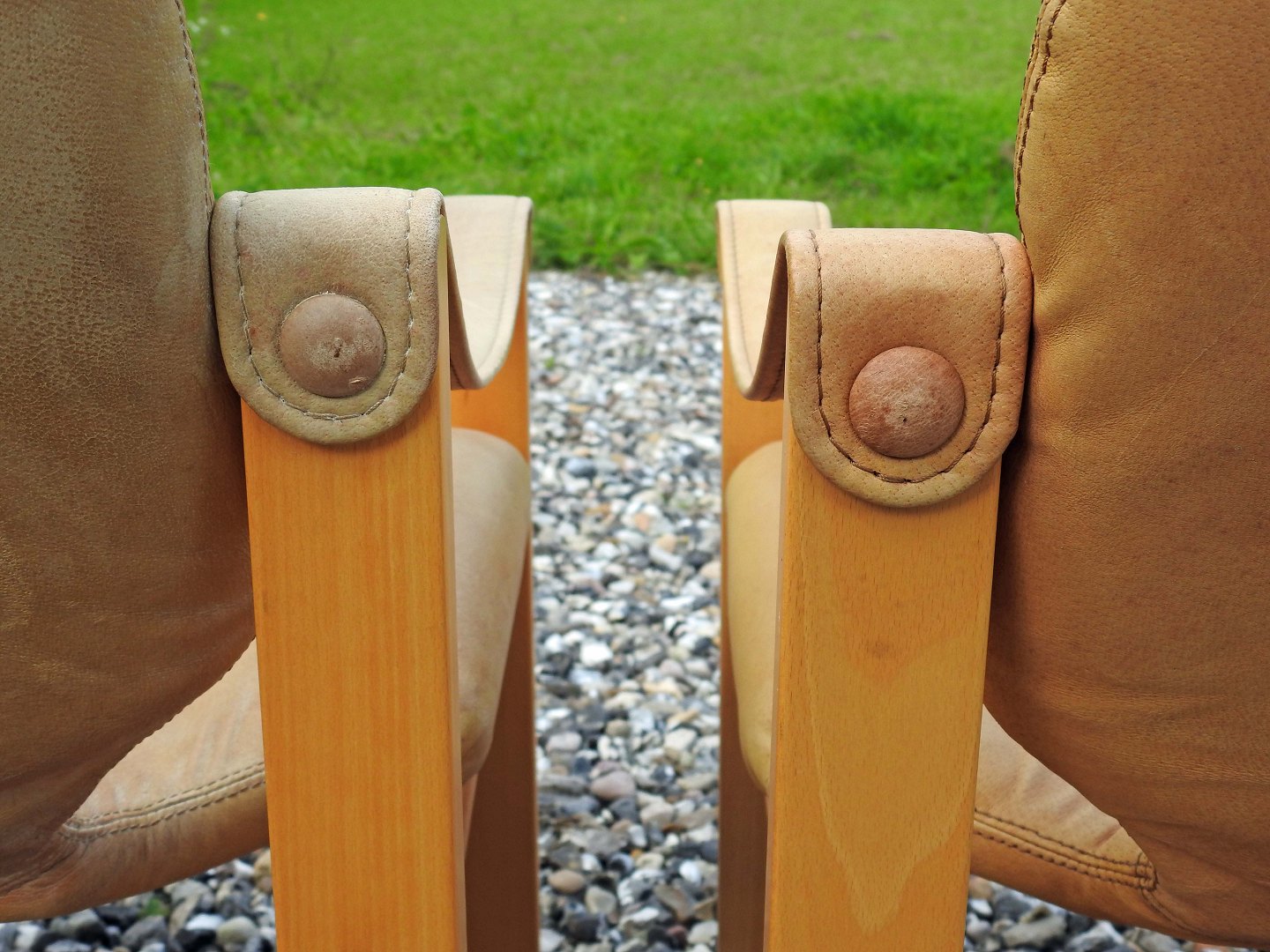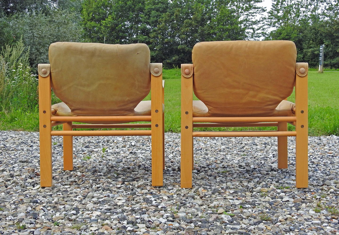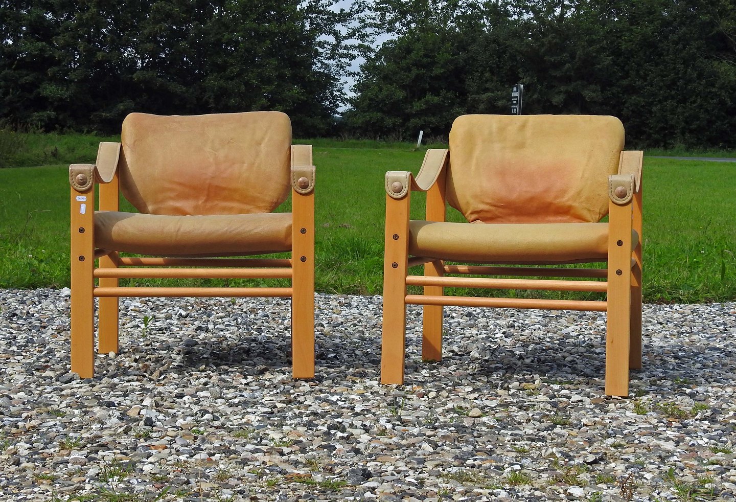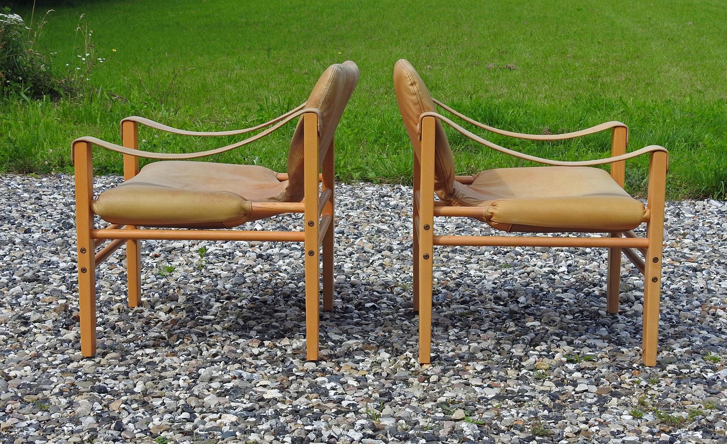 En safariestole i bøg med sæder i lyst naturlæder