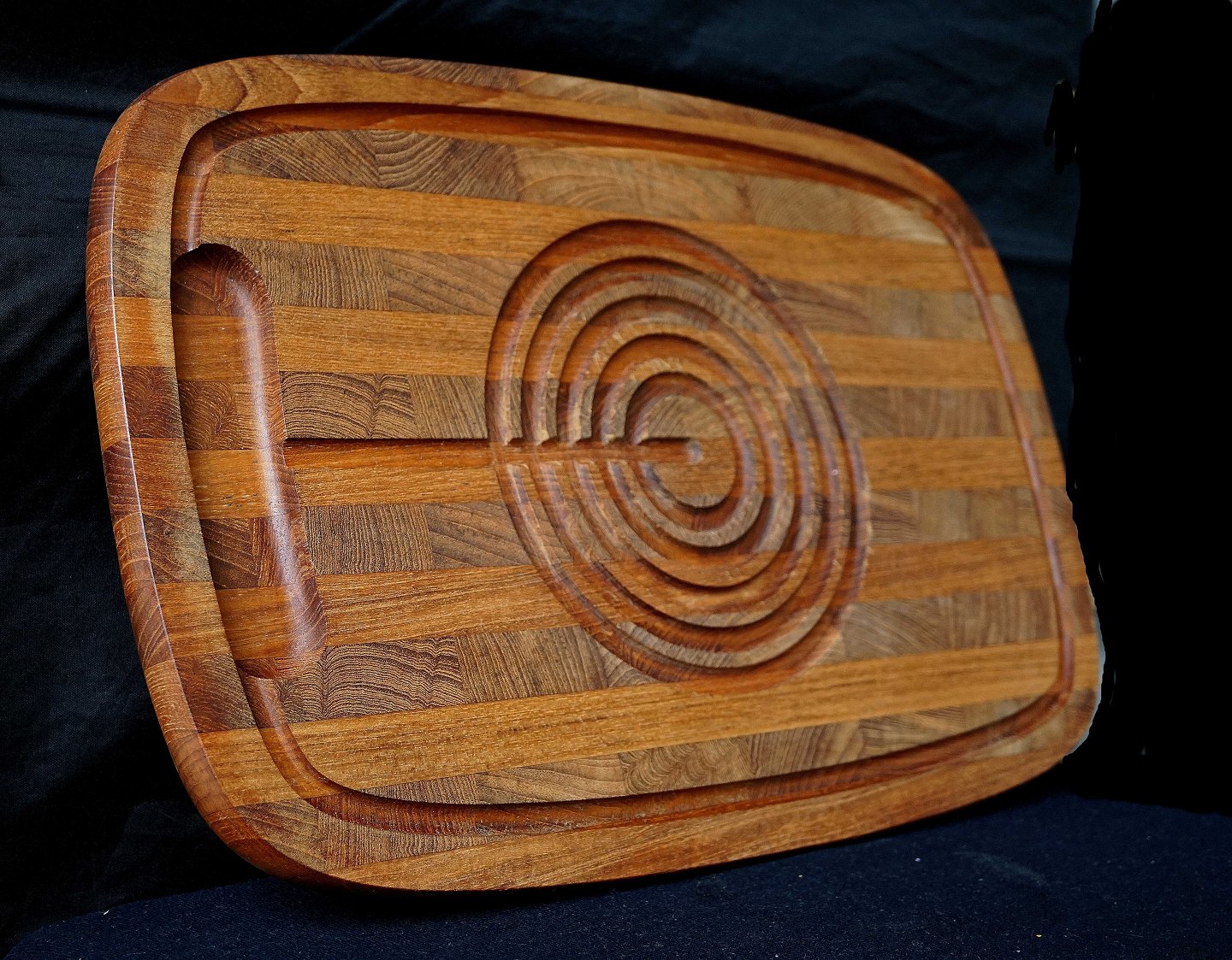 Skærebræt, i stavlimet teaktræ, skærebrættet har blodriller