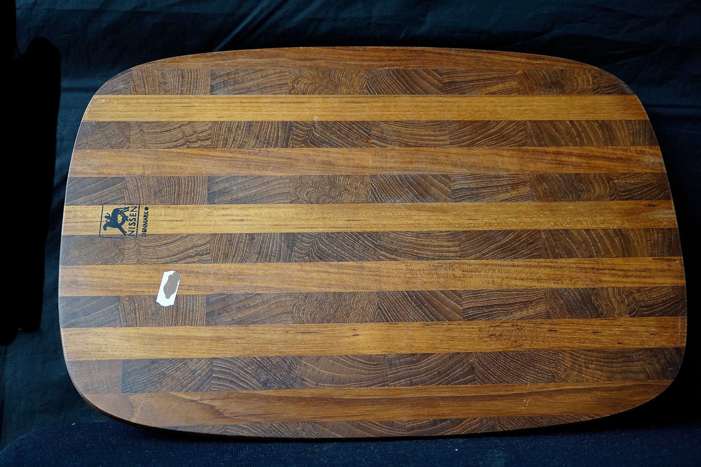 Skærebræt, teaktræ, stavlimet, blodriller, Nissen