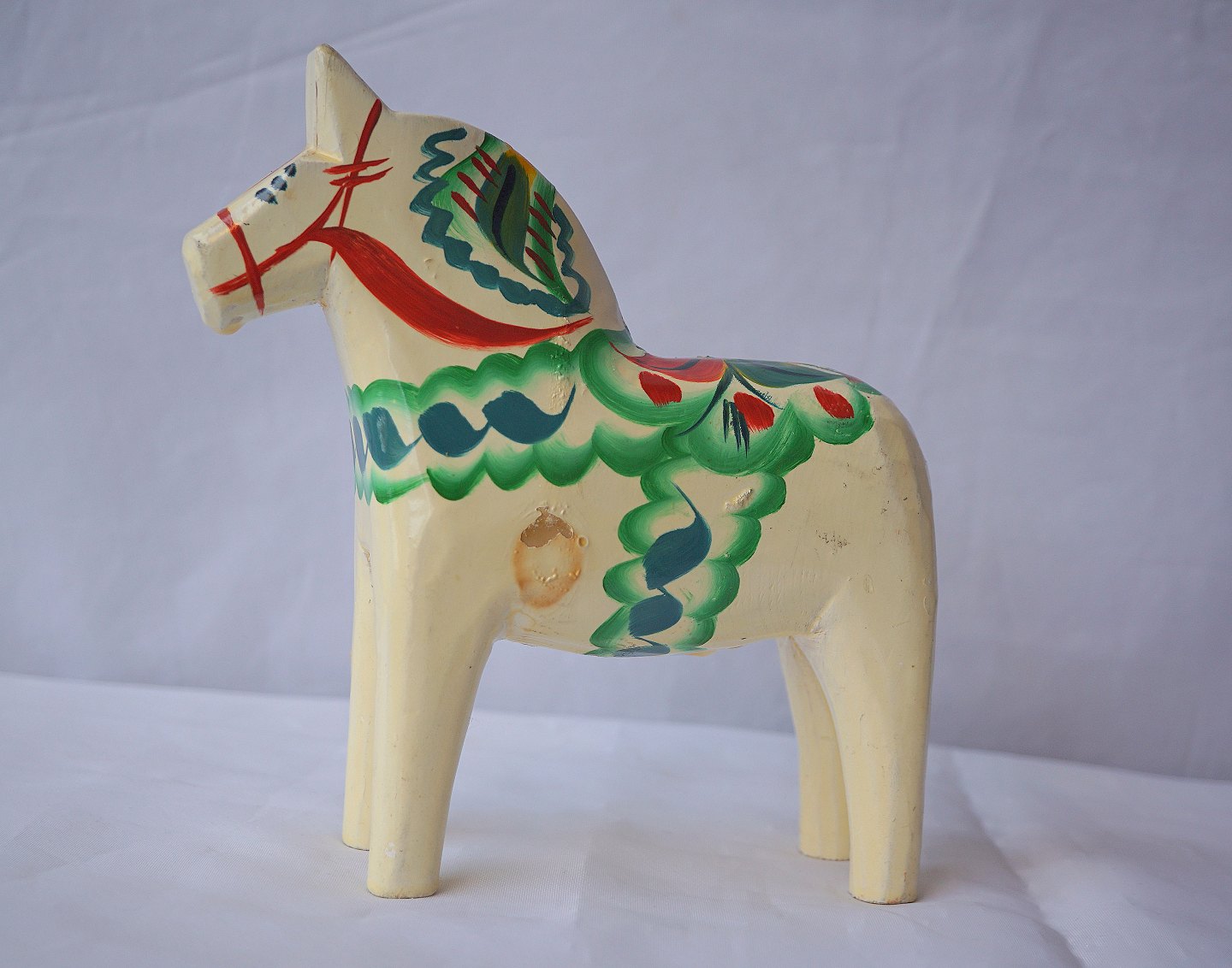 Hvid Dalar hest, i træ, fra Sverige. Tillv. G. A. Olsson