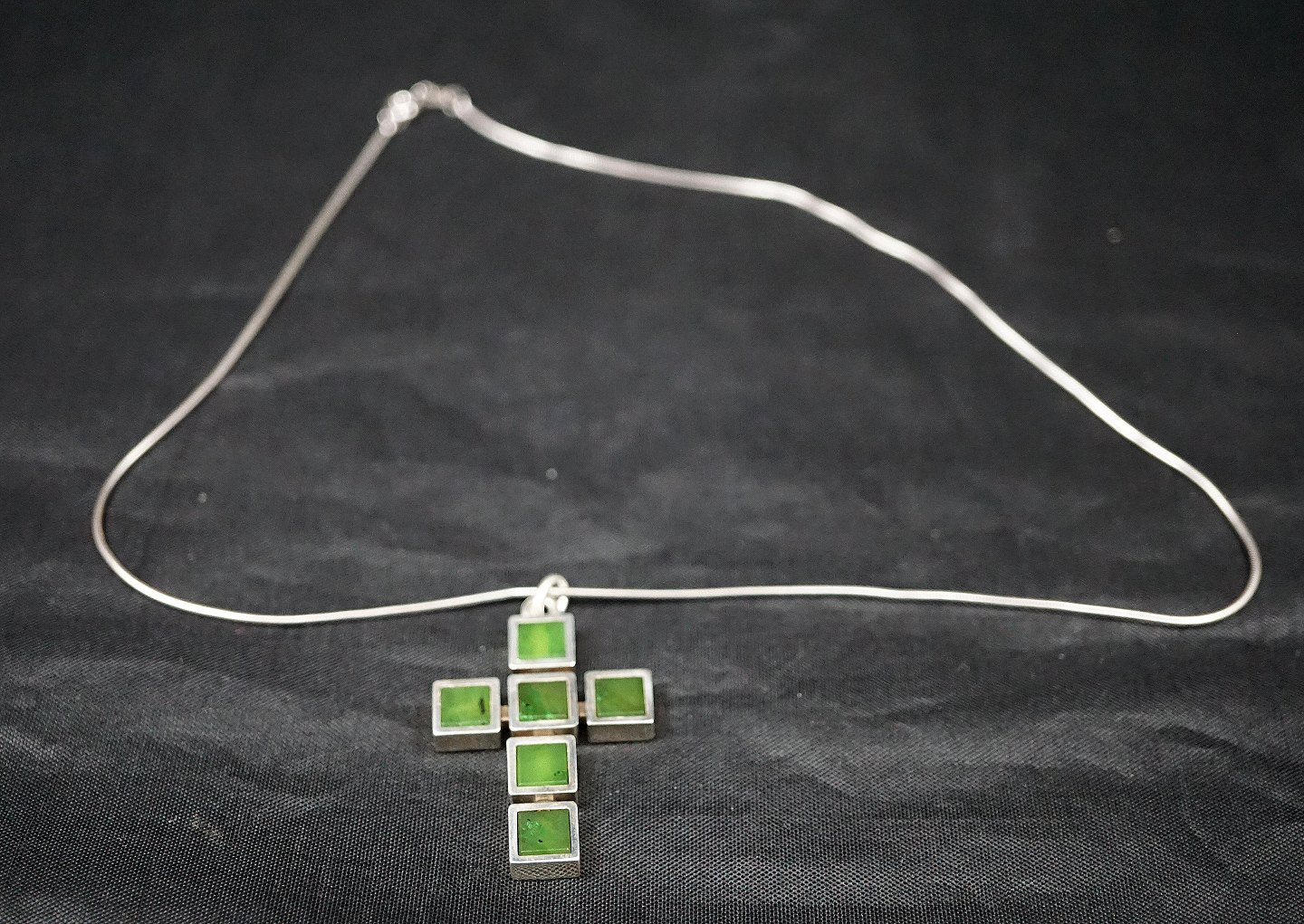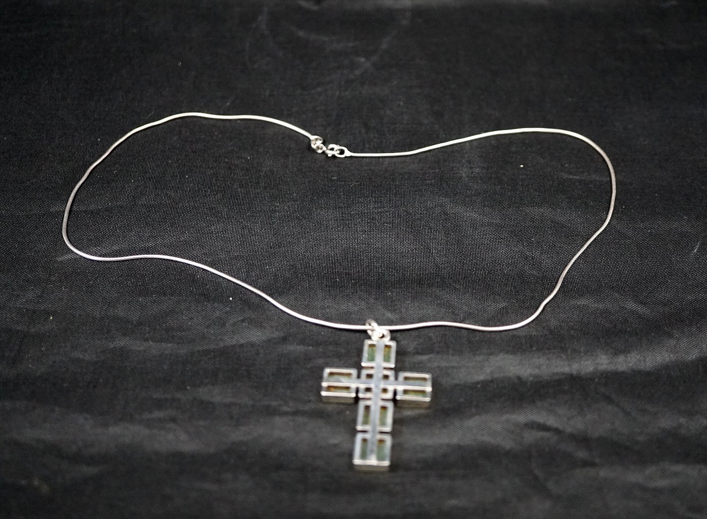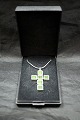 Kæde med vedhæng, Sølvkors med grøn agatsten. sølv 925s sterling