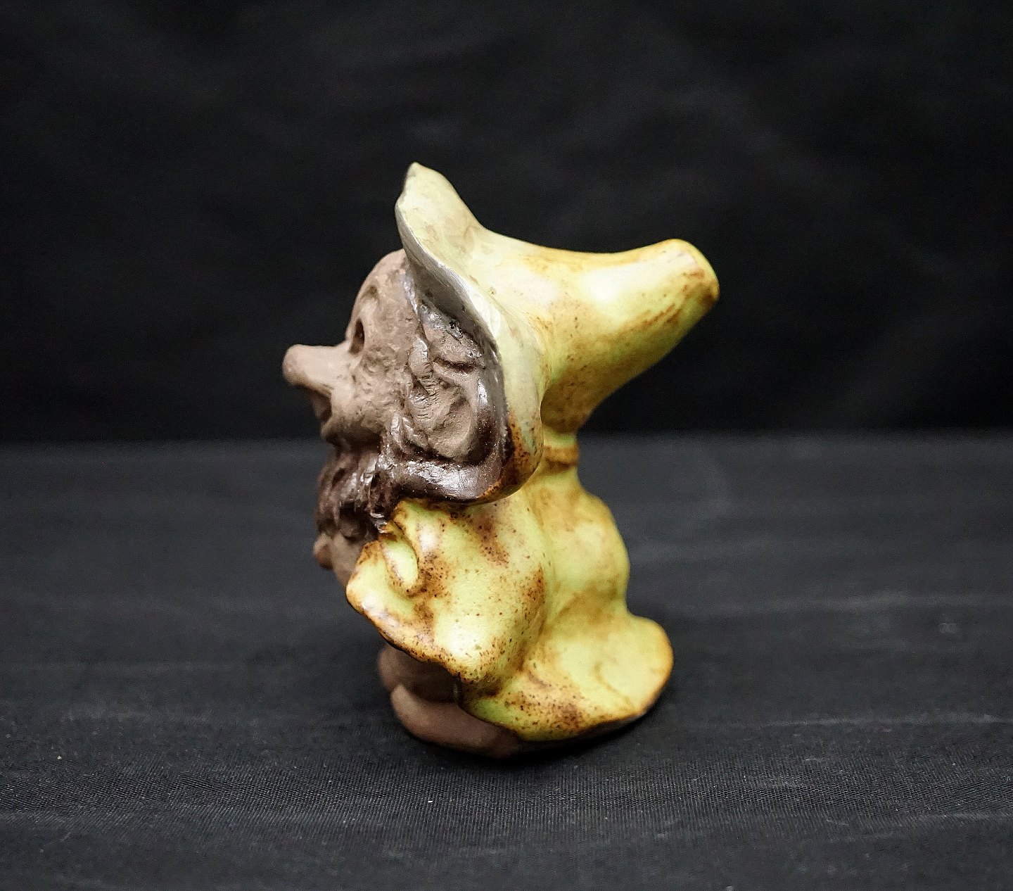 Dam trold (67) i keramik. Gjøl trold. Trolden har gul frakke på