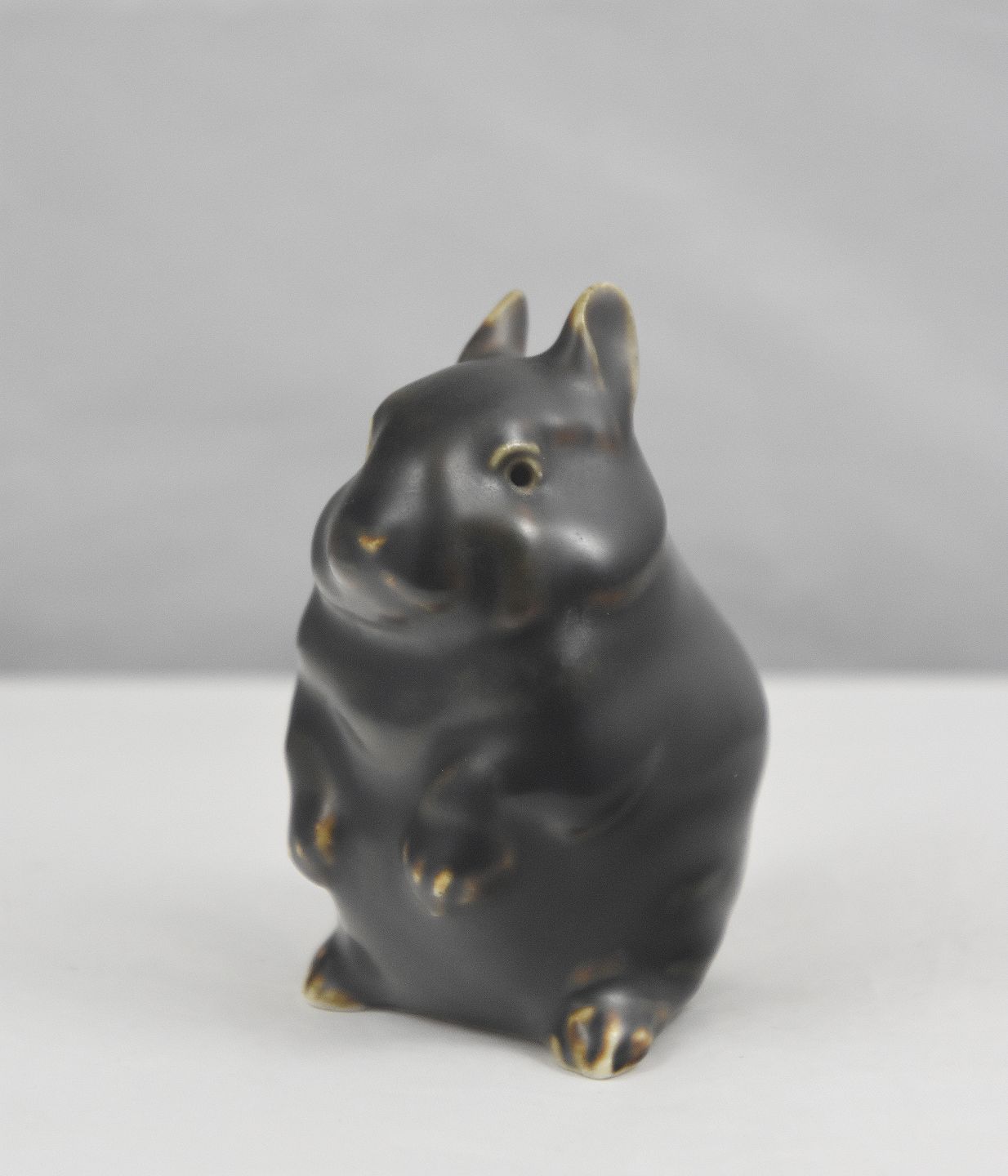 Stående, brun kaninunge, nr. 22690, i stentøj