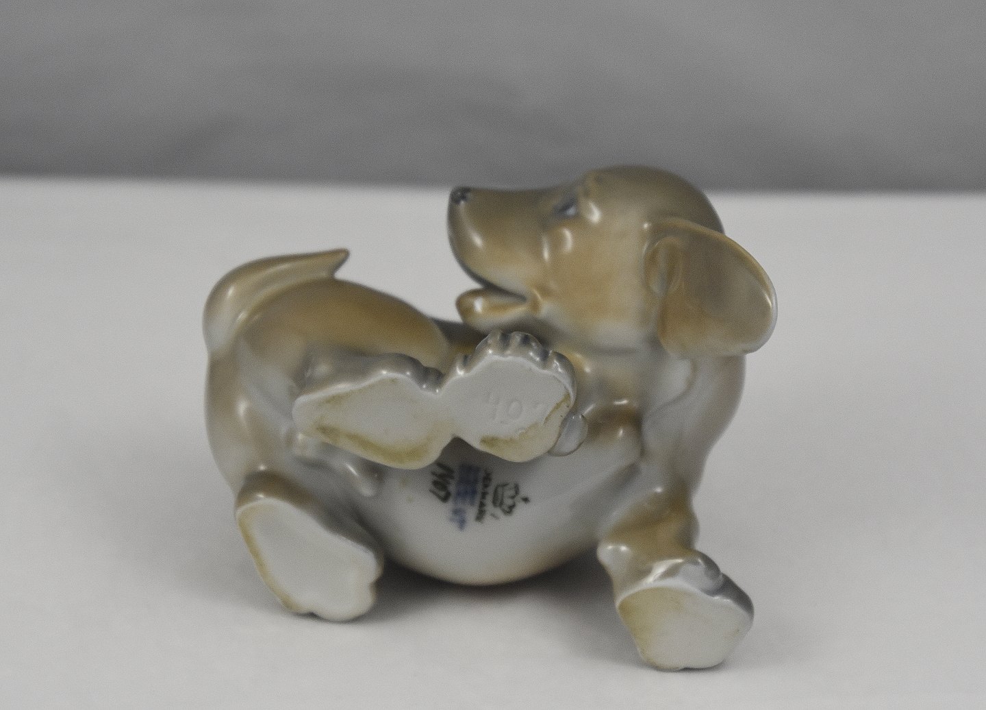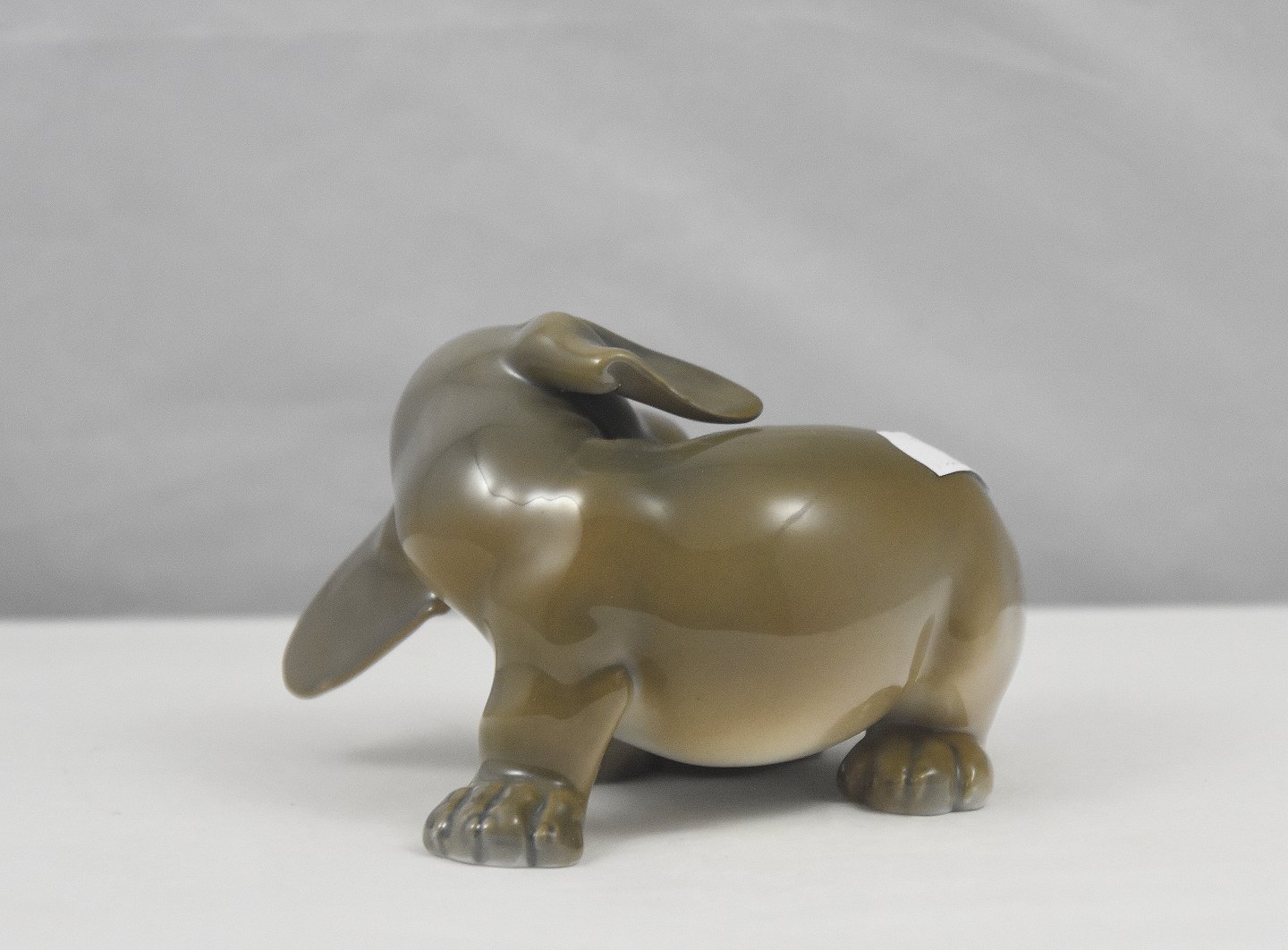Royal Copenhagen figur af Korthåret, siddende korthåret gravhund nr. 1407. 1 sortering.