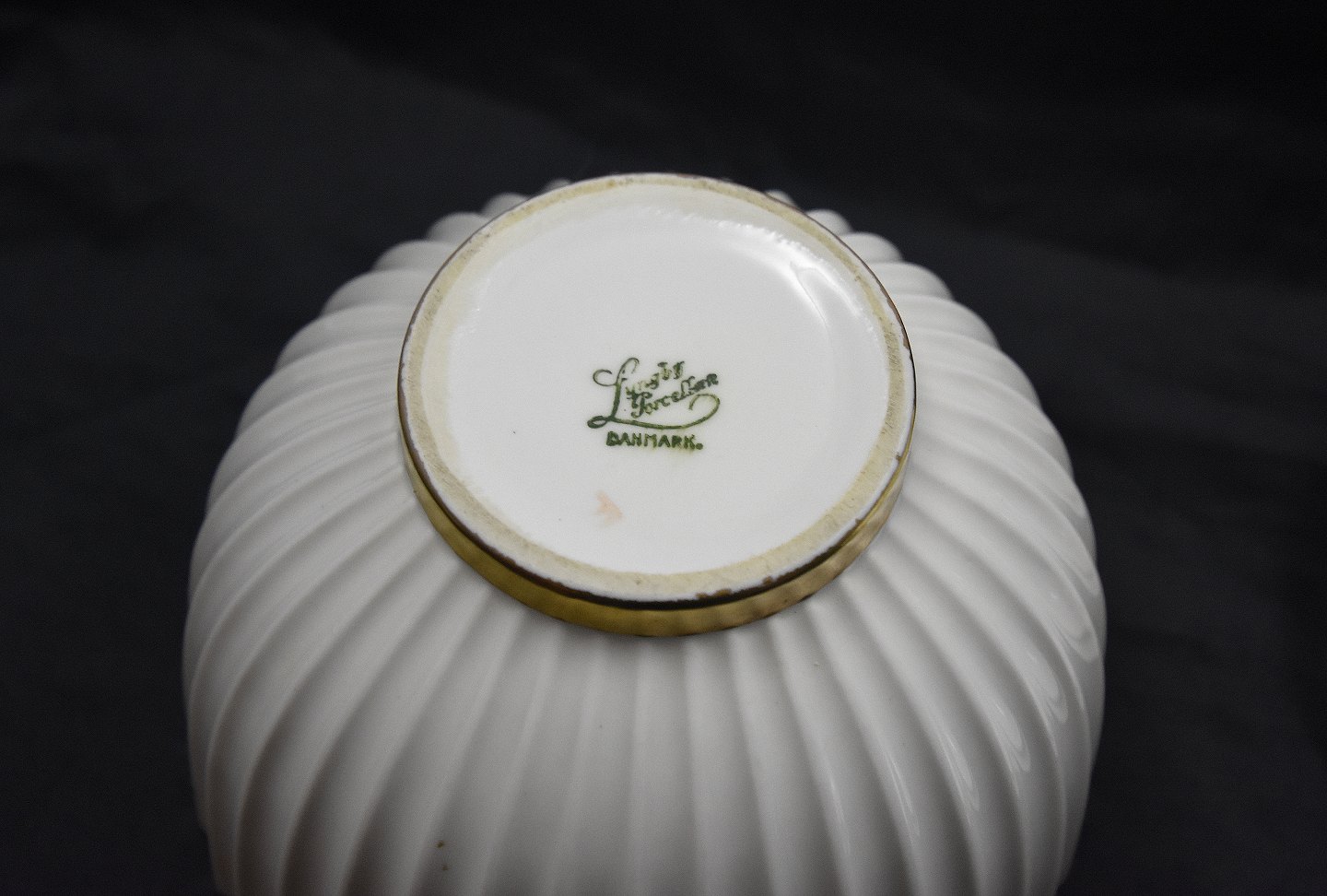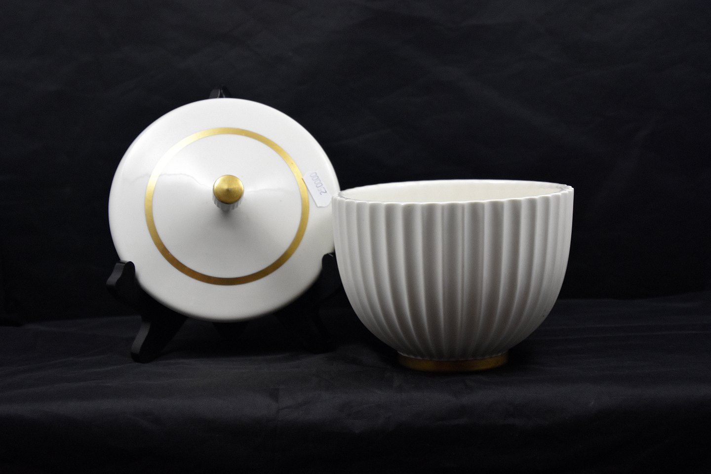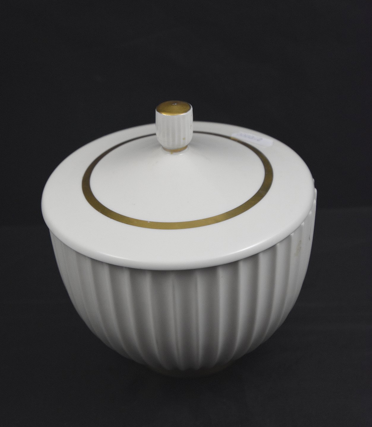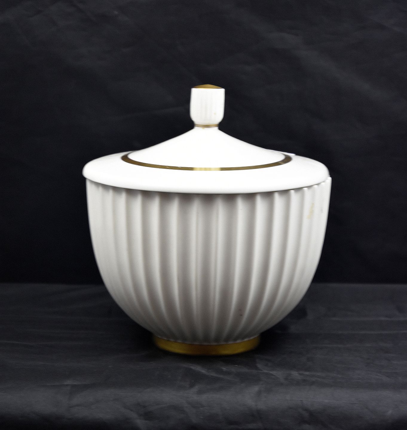 Lyngby, porcelæn, skål, bonbonnier, hvid, låg, riflet, krukke