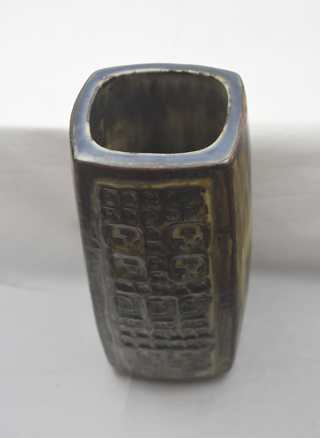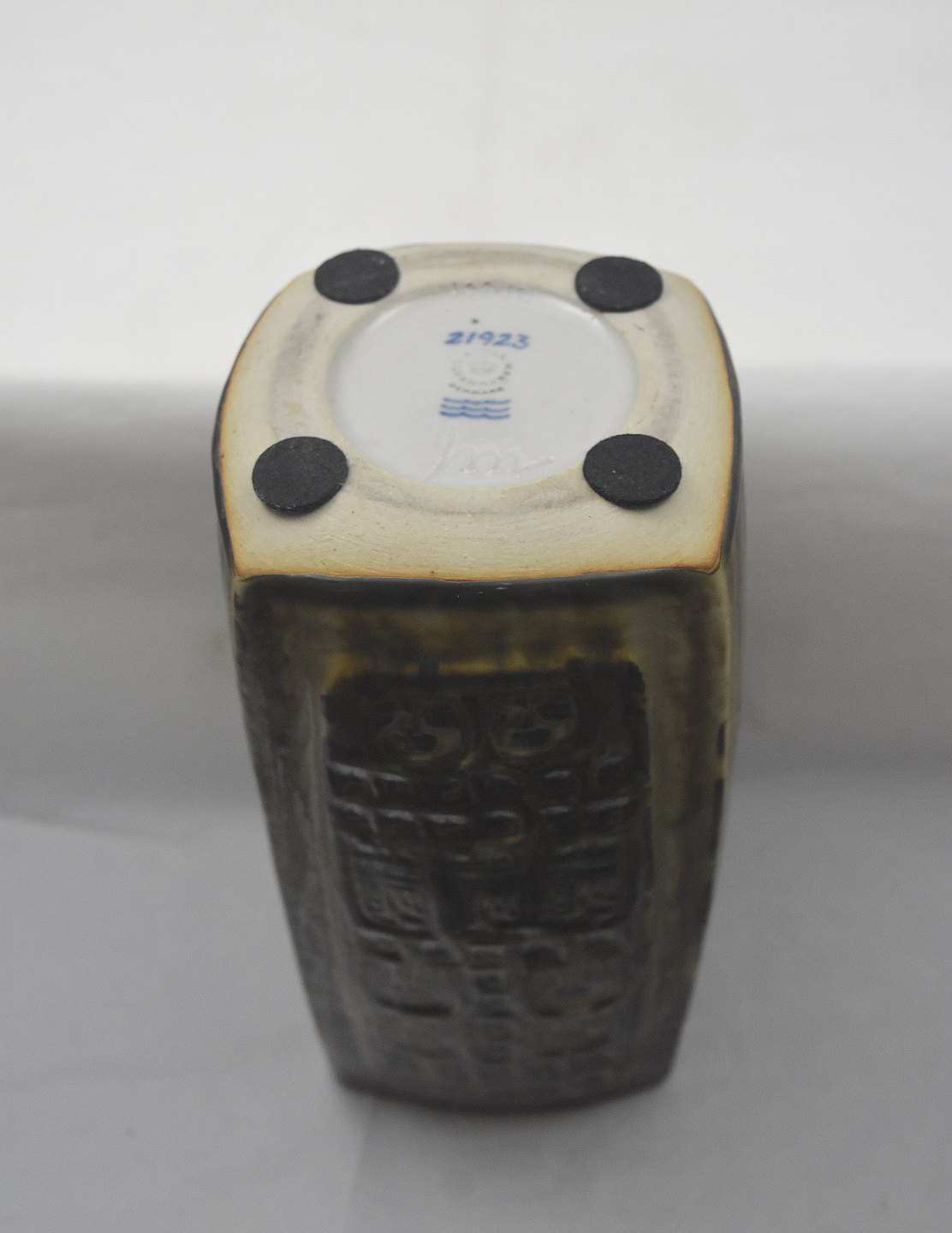 RC 4-kantet vase nr 21923 i stentøj, dekoreret med fantasi fugle