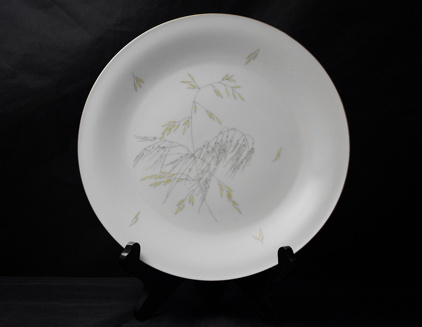 Venus, middagstallerken, nr 25. Venus med guldkant, hvidt porcelæn med grønt og gult græs