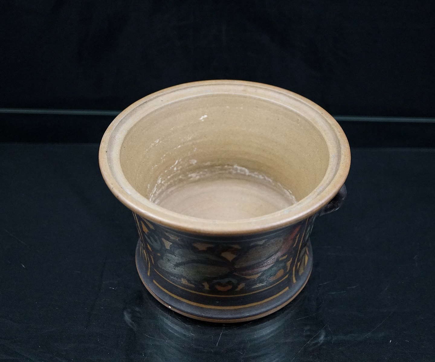 Hjorth, krukke med bladmønster. Krukken er af stentøj