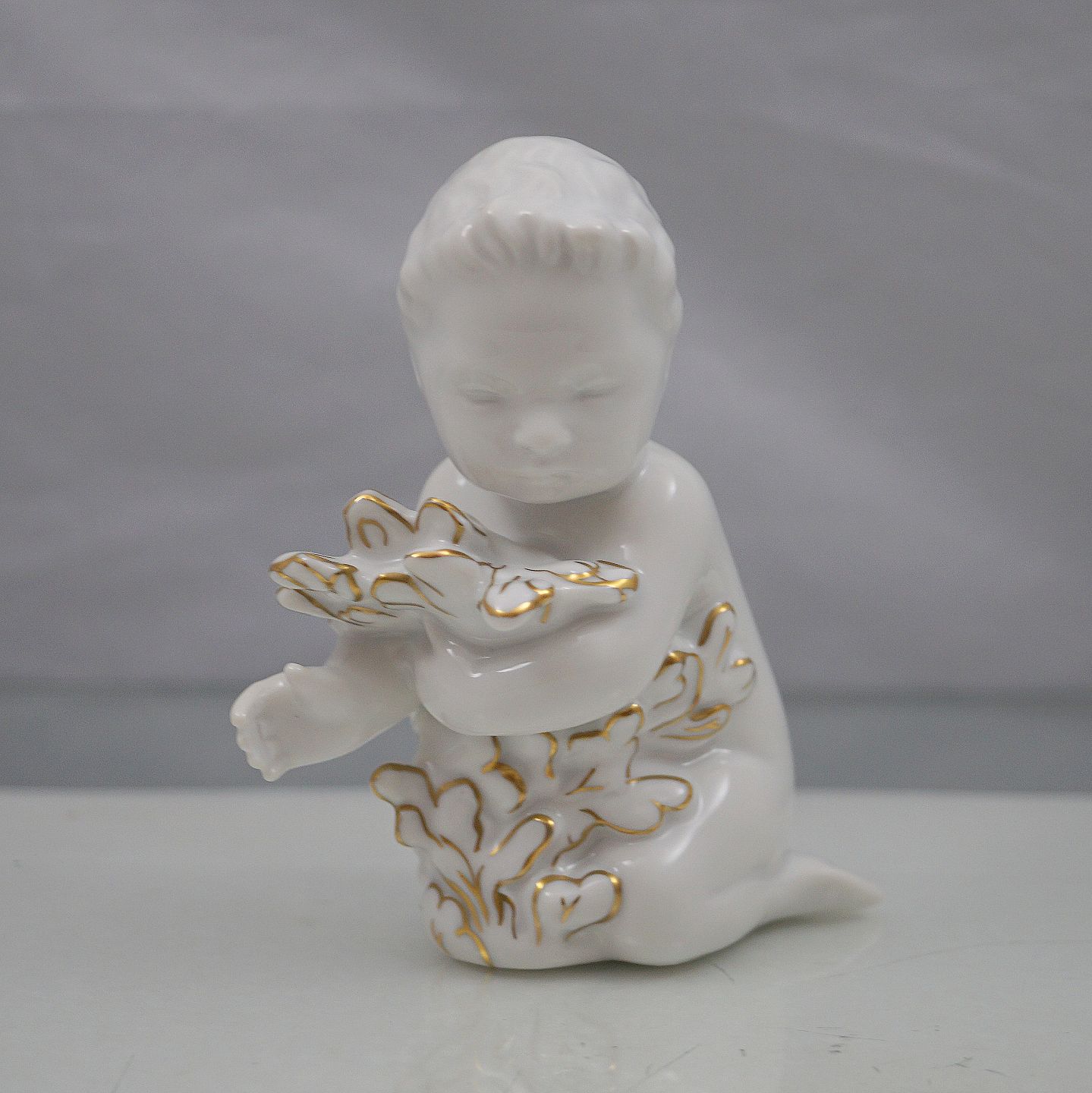 Bing & Grøndahl, figur af havdreng med tang nr. 2266. Havdrengen har guld på kanterne af tangen