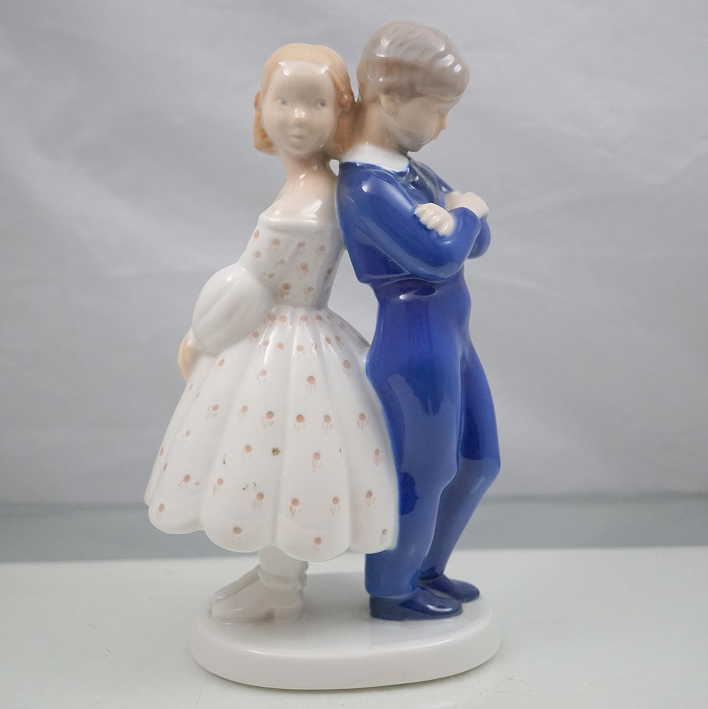 Bing & Grøndahl, figur af Hans og Trine/Dreng og Pige nr. 2372 Dansende par med ryg mod hinanden