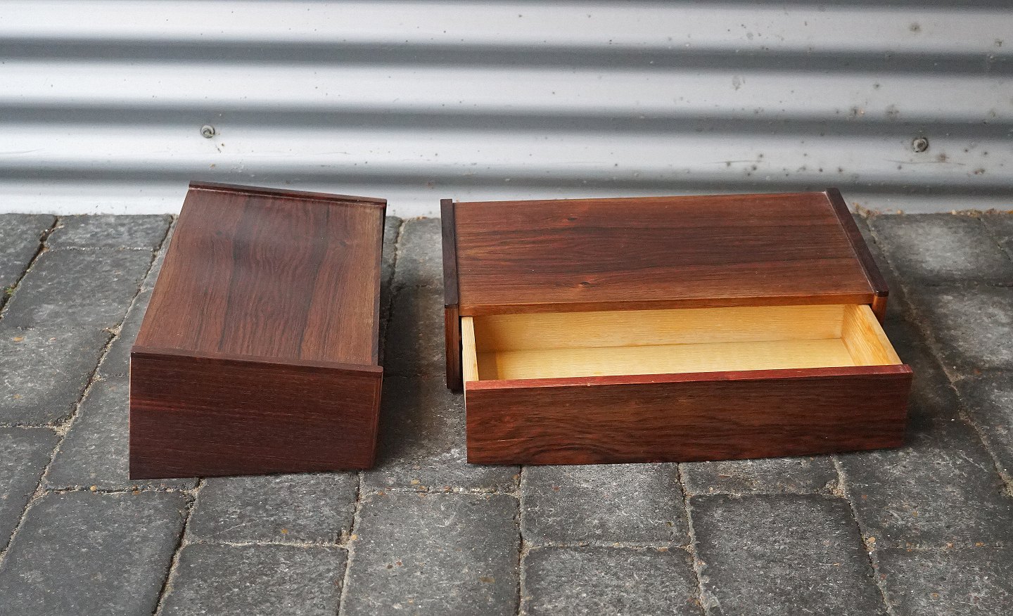 2 stk. sengeborde, i palisander. Sengebordene er til at hænge på væggen