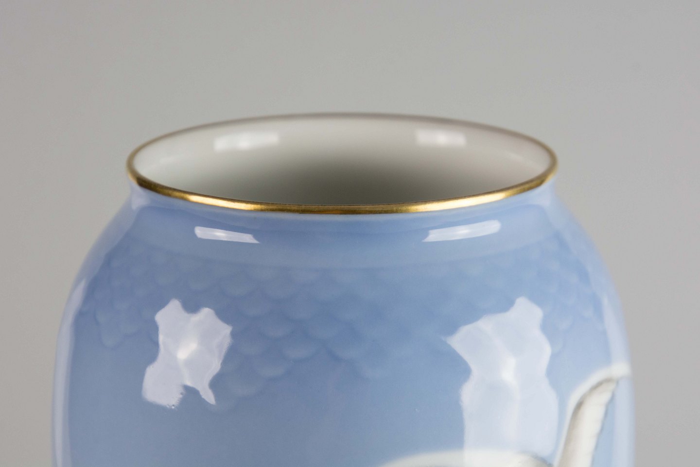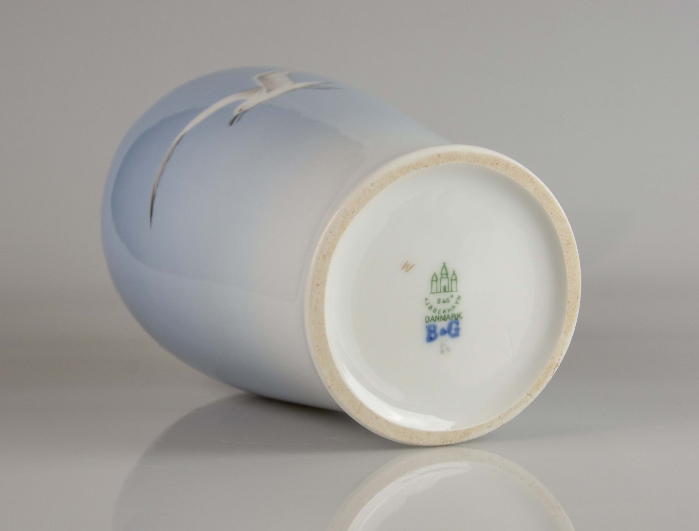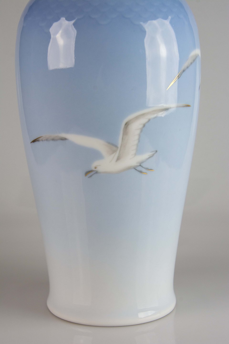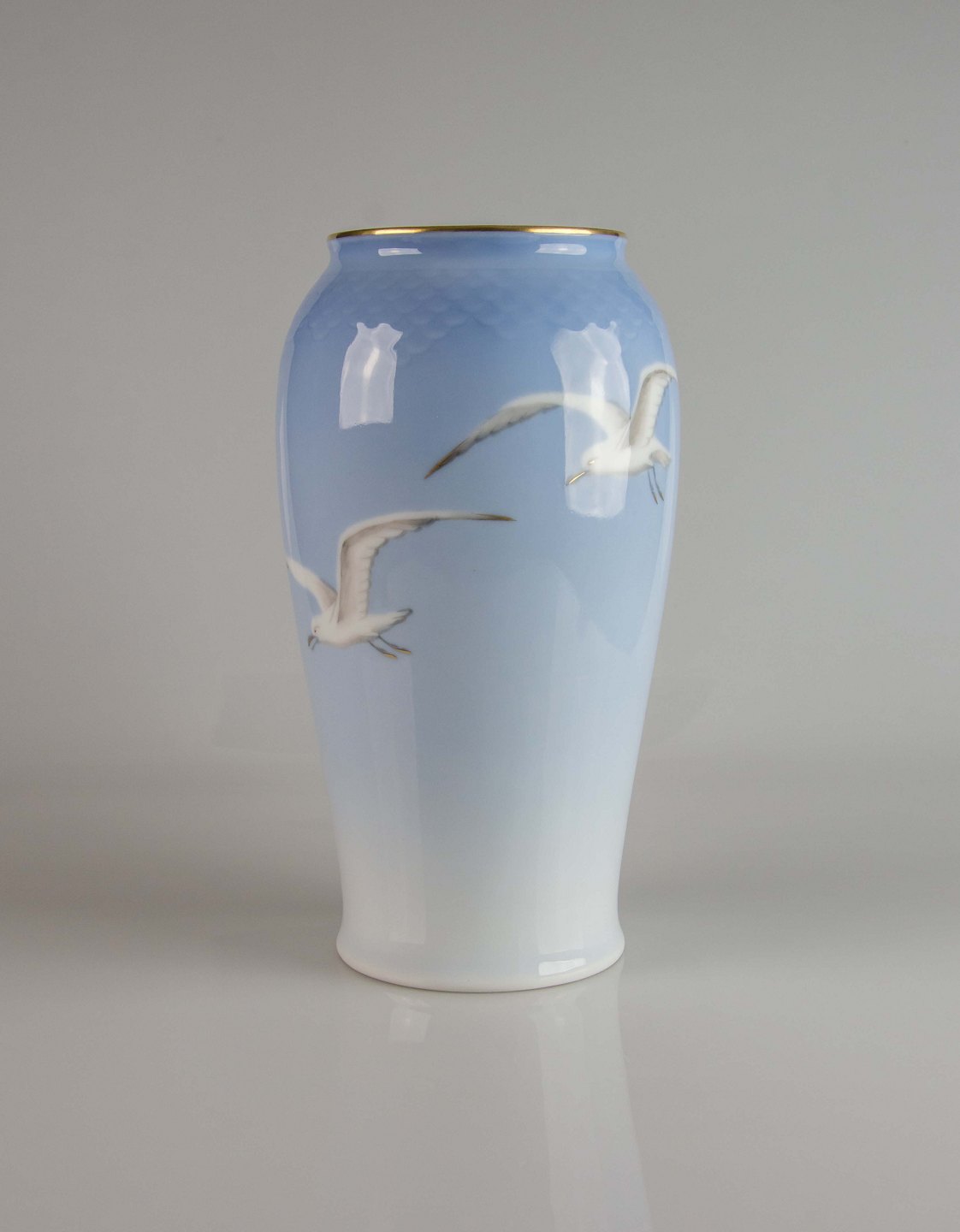 Vase i porcelæn med guldkant og motiv af flyvende måger