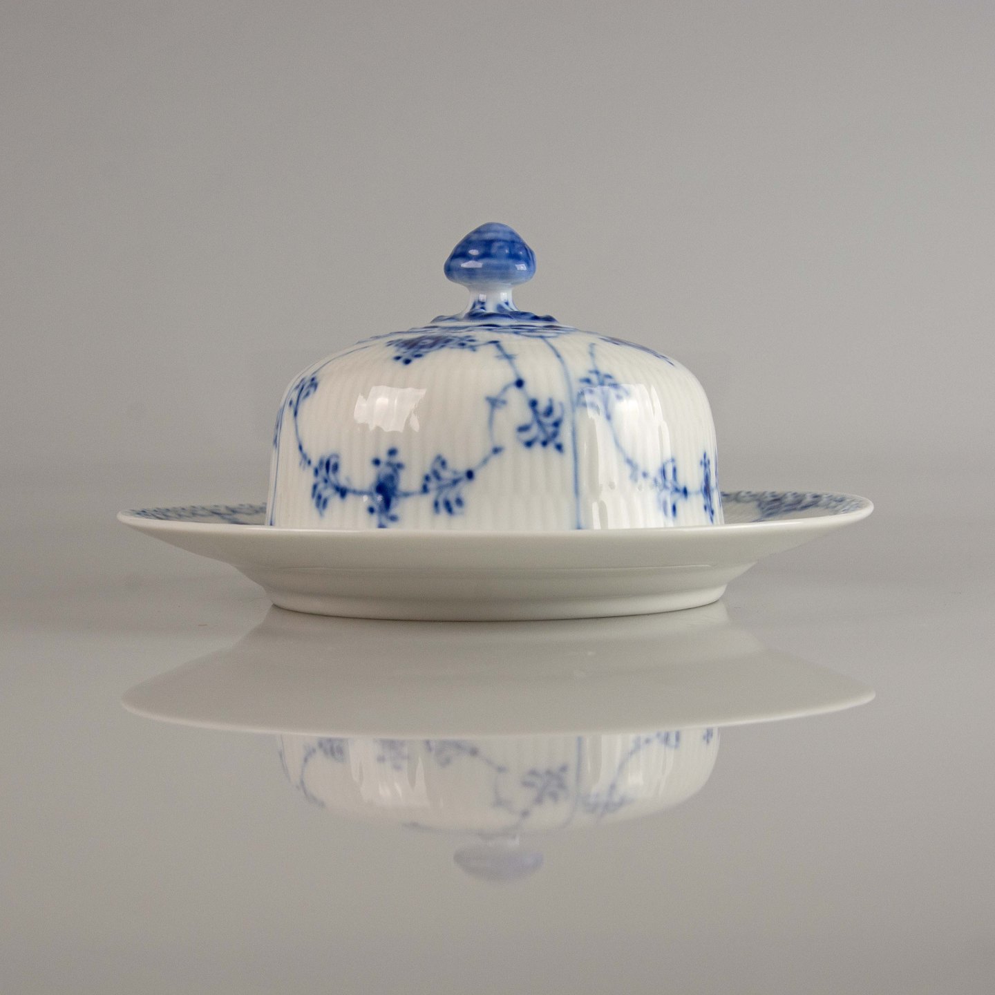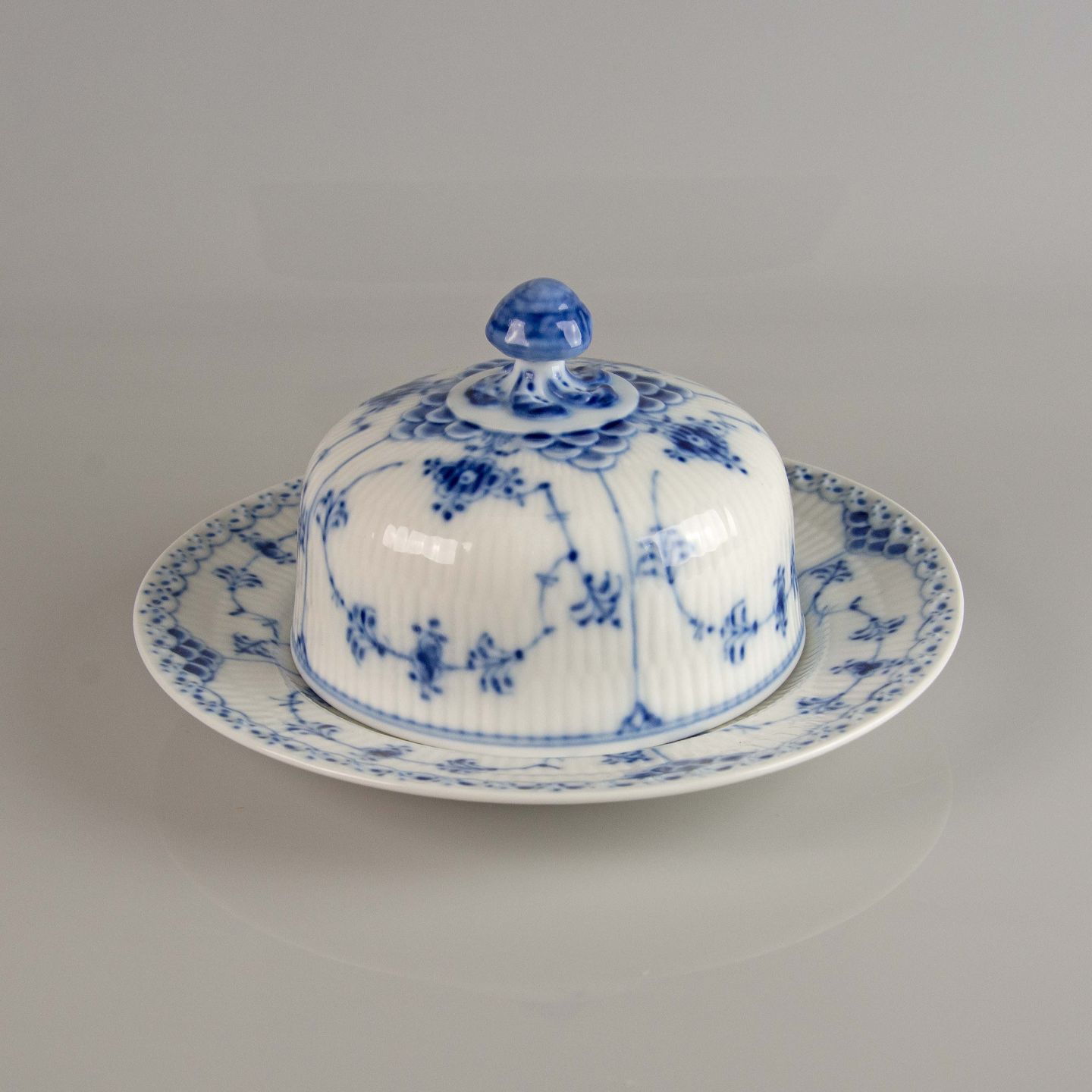 Musselmalet halvblonde smørskål med låg nr. 1/502