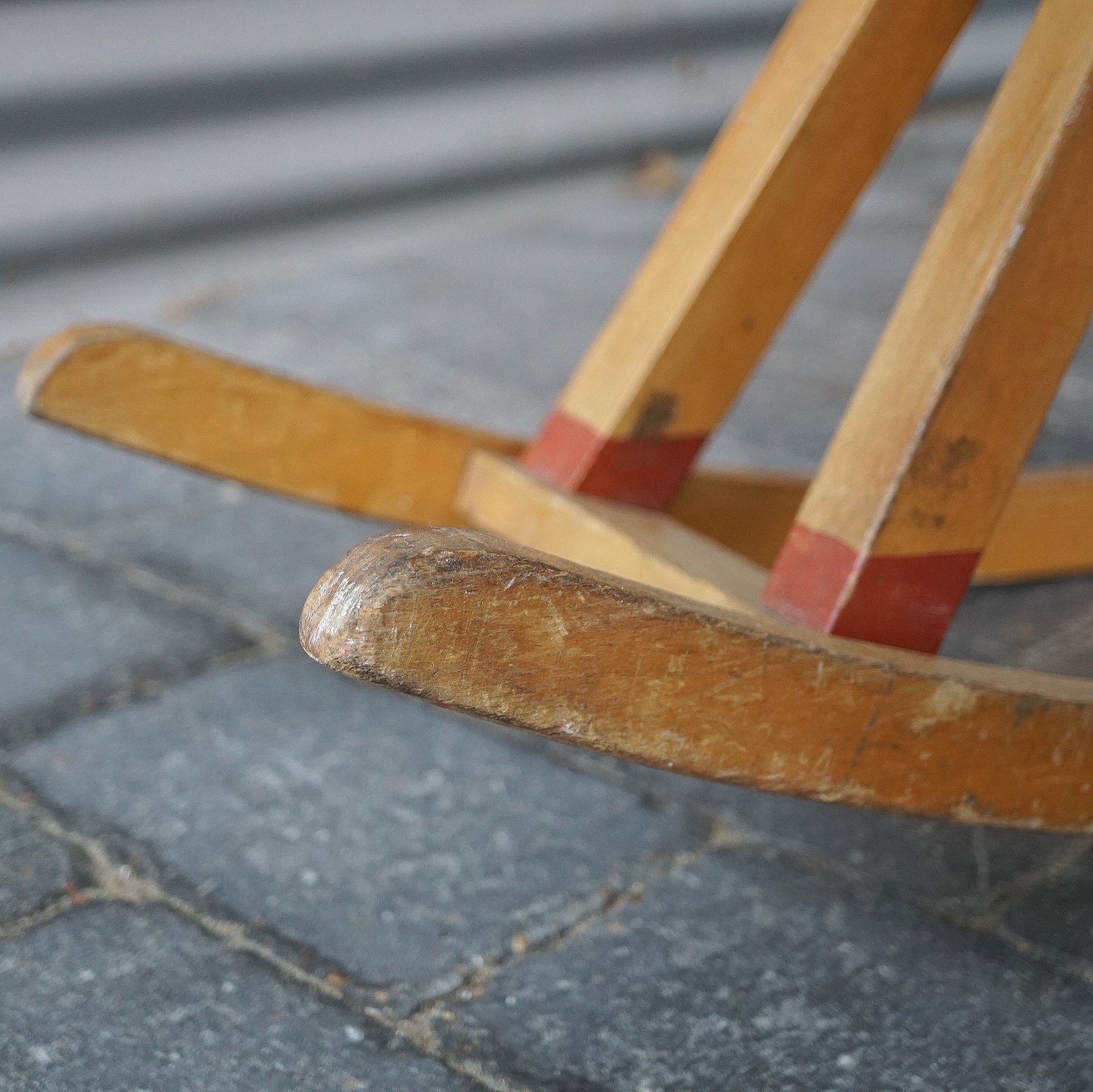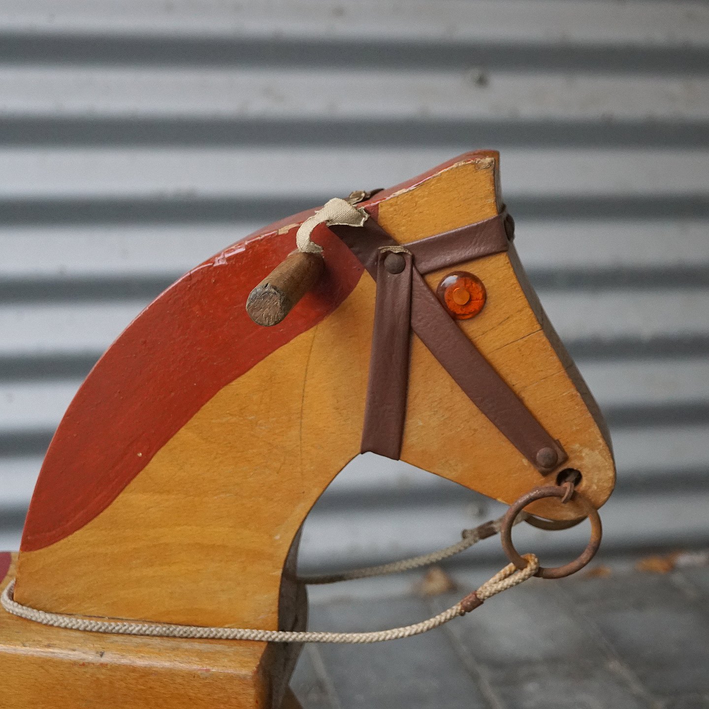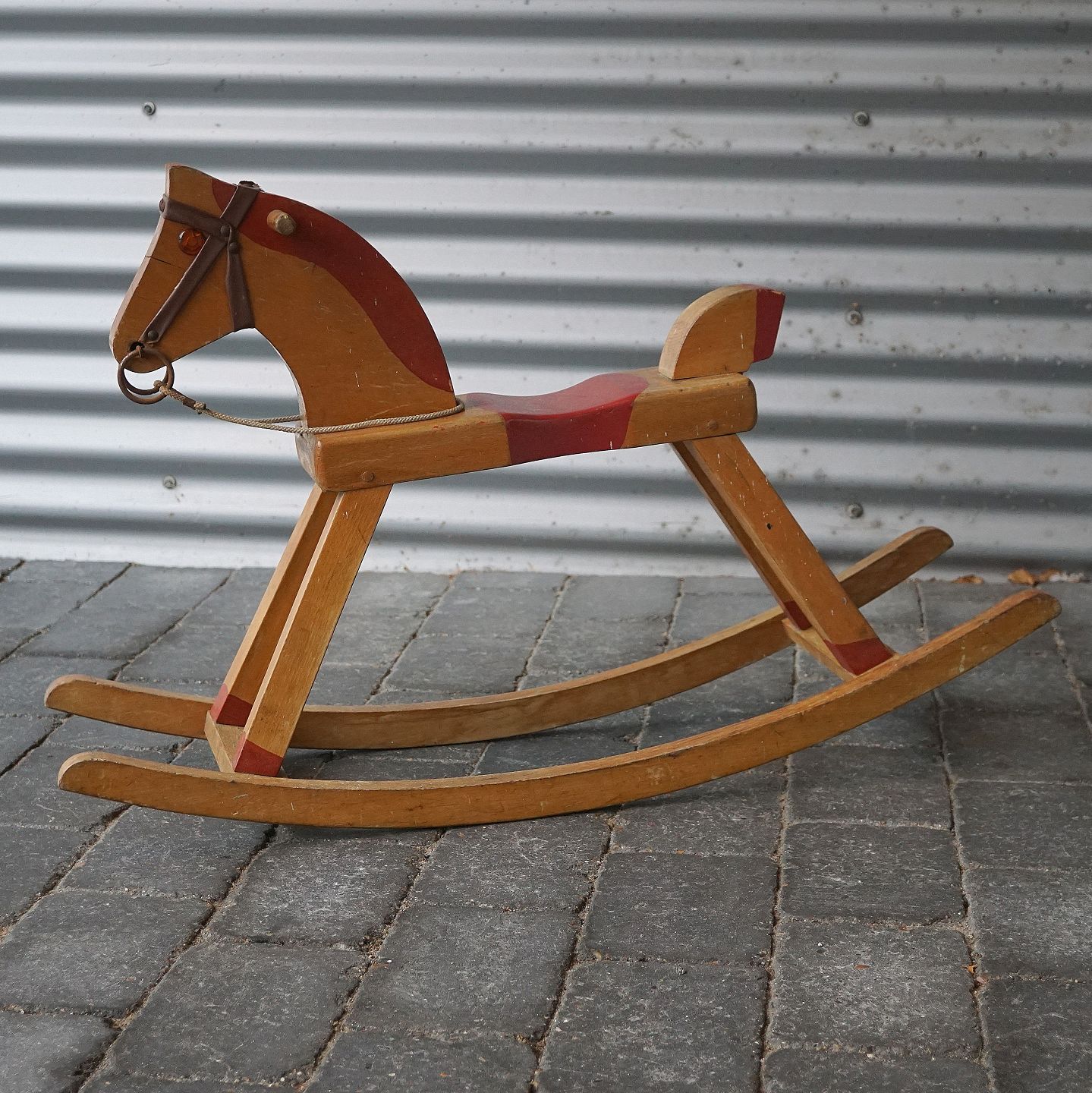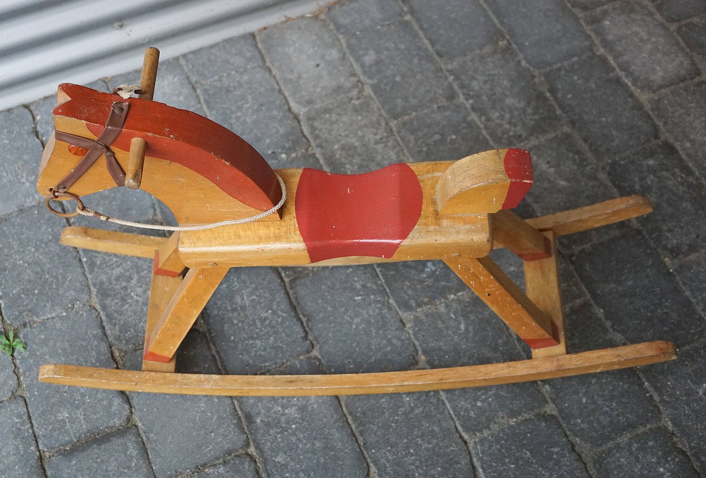 Kay Bojesen Træ gyngehest, der er bemalet. der er almindelige brugsspor, efterleg, på hesten
