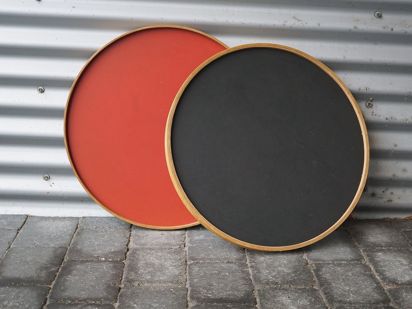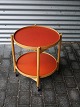 Bord på hjul med foldbart stel og vendbare bakker i sort og rødt laminat